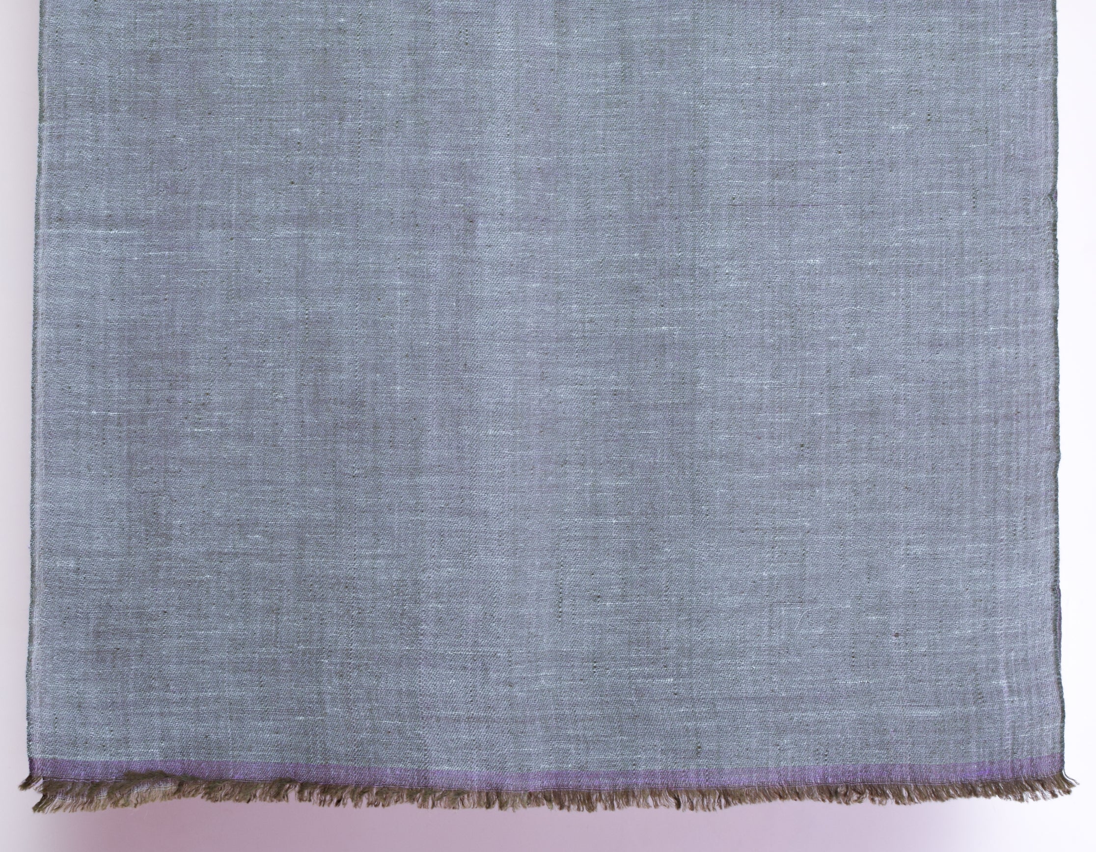 COLOUR: A dual-coloured cashmere pashmina featuring saffron lavender and pastel grey.