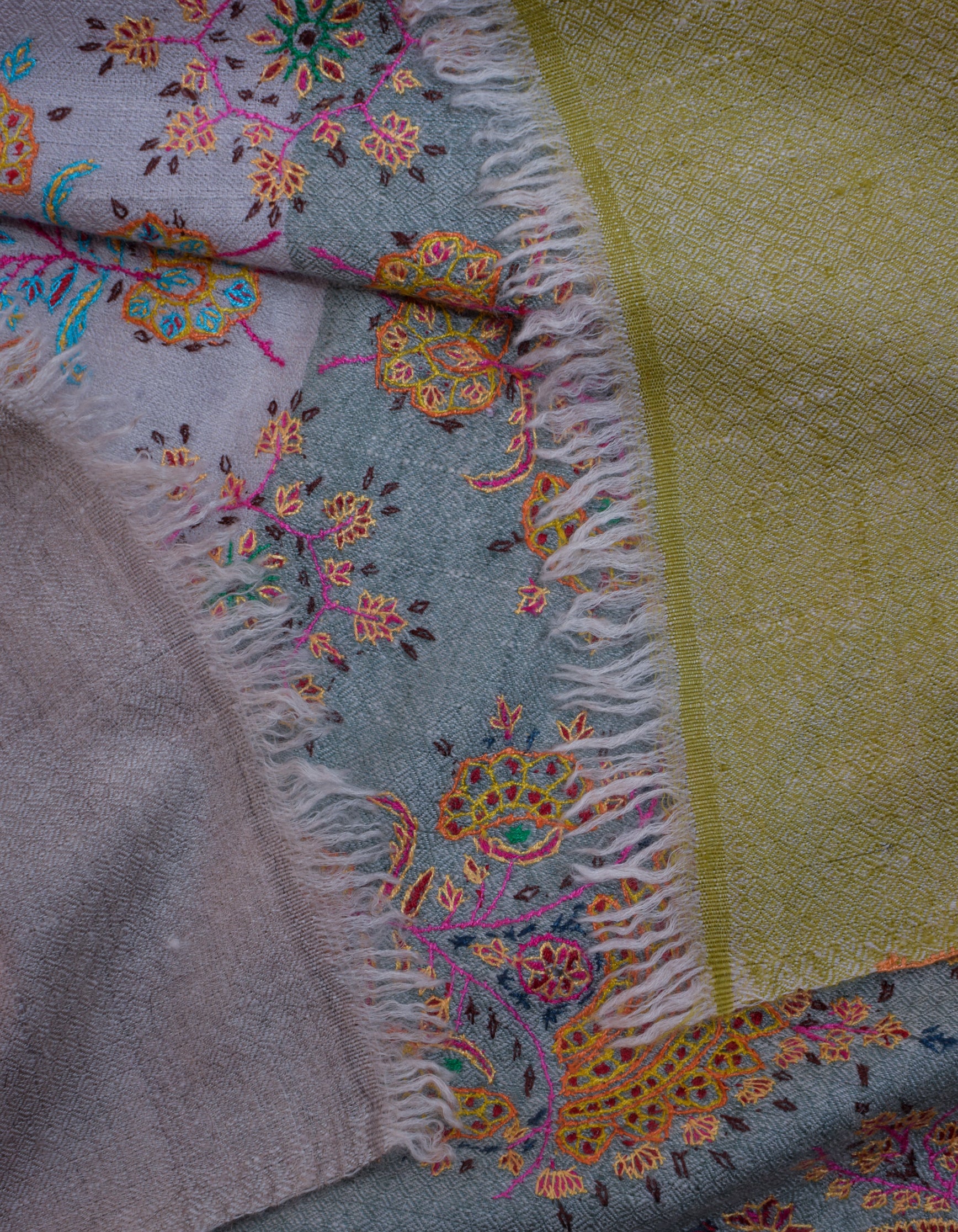 • Created by the hands of Kashmiri artisans, this luxurious Cashmere Pashmina features subtle variations in its fabrication and embroidery that serve as marks of authenticity, making it a one-of-a-kind beauty.