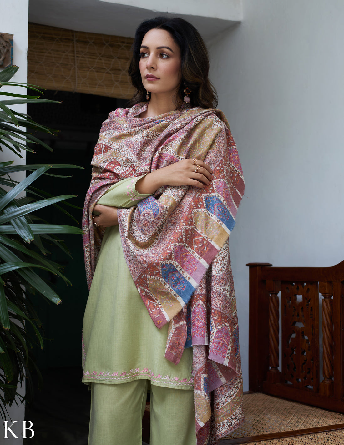 Kashmiri Handwoven Pashmina Sozni Stole Modern Design – Orchid Pink with Green Embroidery | Handwoven HeritageKashmiri Handwoven Pashmina Sozni Stole Modern Design – Orchid Pink with Green Embroidery | Handwoven Heritage- Regular price