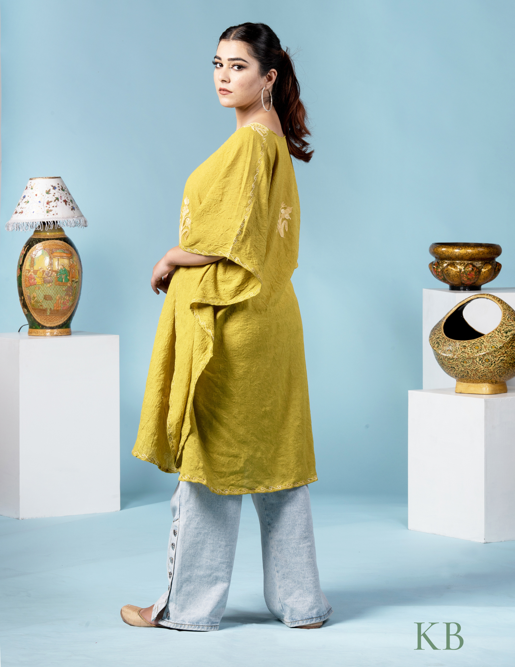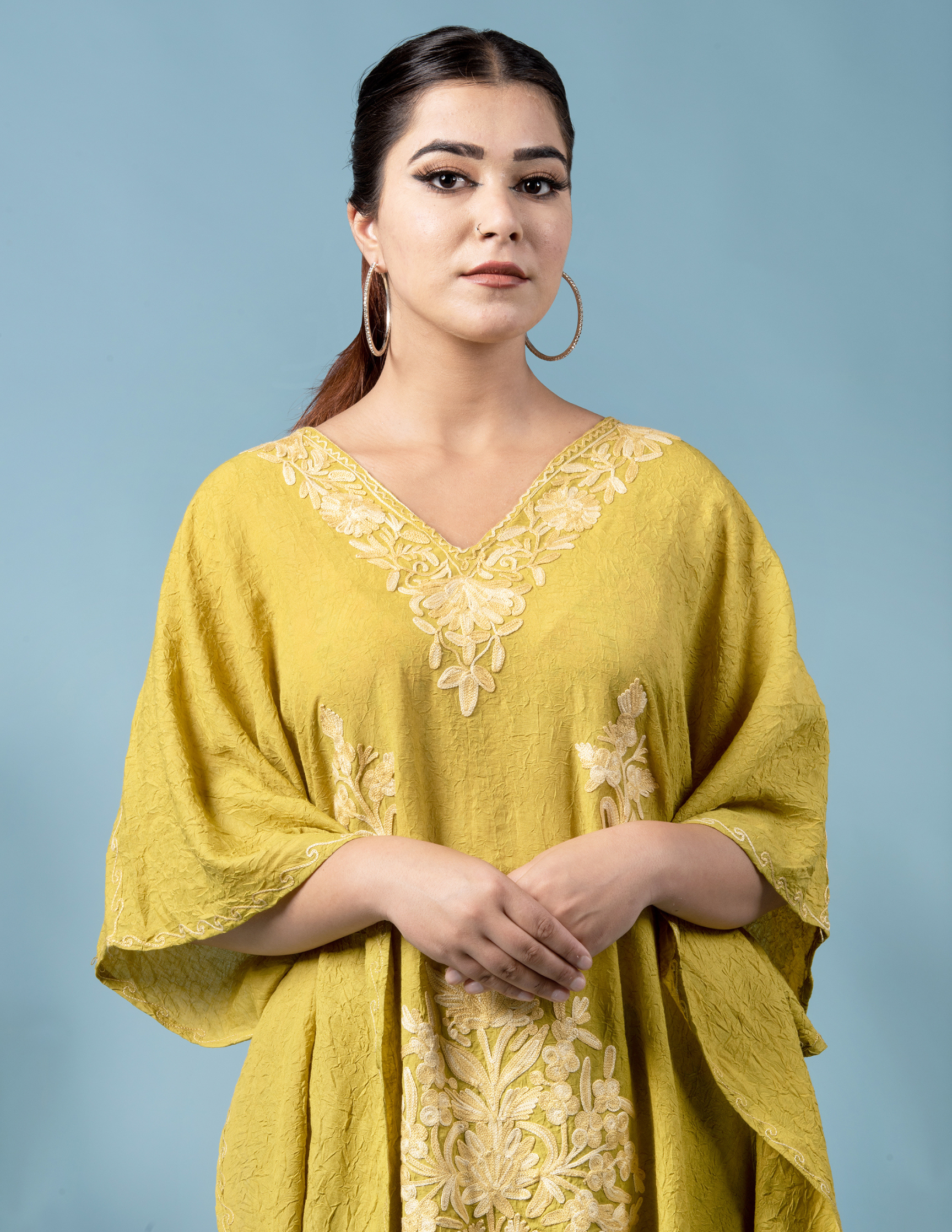 Apple Yellow Cotton Aari Embroidered Short Summer Kaftan