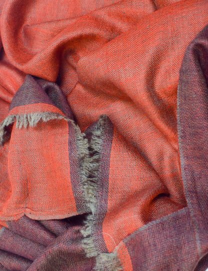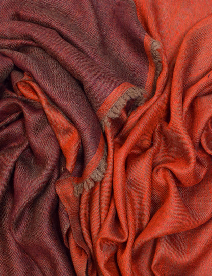 PRODUCT DESCRIPTION: A celebration of the craft and care of Kashmiri artisans, this beautiful pashmina cashmere shawl is handwoven on traditional looms that have been preserved through generations. It features dual shades —one side is tuscan brick red, while the other is neon orange—giving you two beautiful looks in one. This shawl isn’t just an accessory; it’s a connection to a timeless tradition of craftsmanship. Each time you wear it, you honour the hard work and dedication that went into making it.