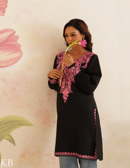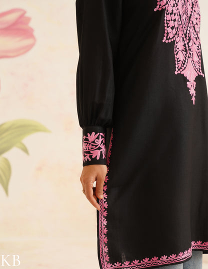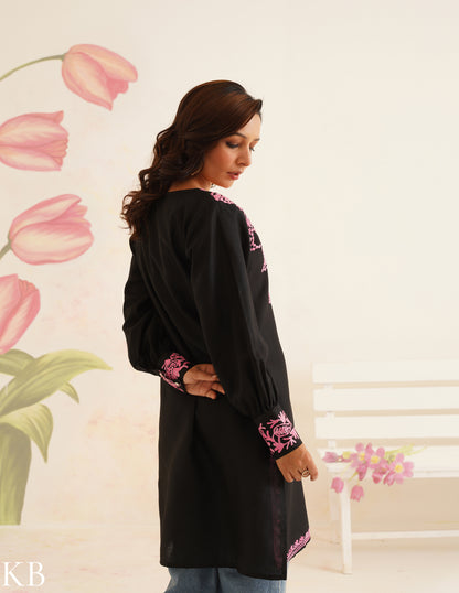 Black Cotton Kurti with Pink Aari Embroidery | Bahaar Collection 2025