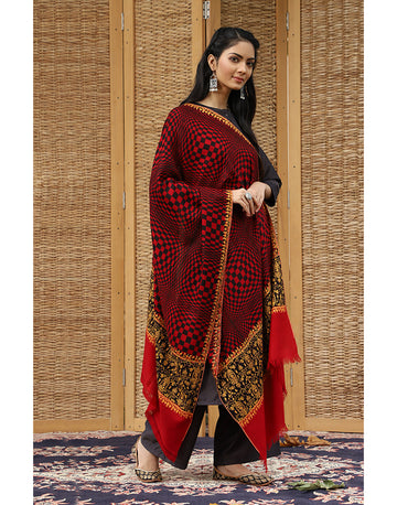 Black Red Paladaar Check Cashmere Stole