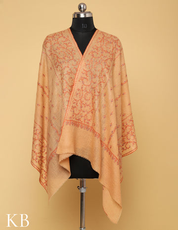 Buff Orange Sozni Embroidered Pure Pashmina Stole
