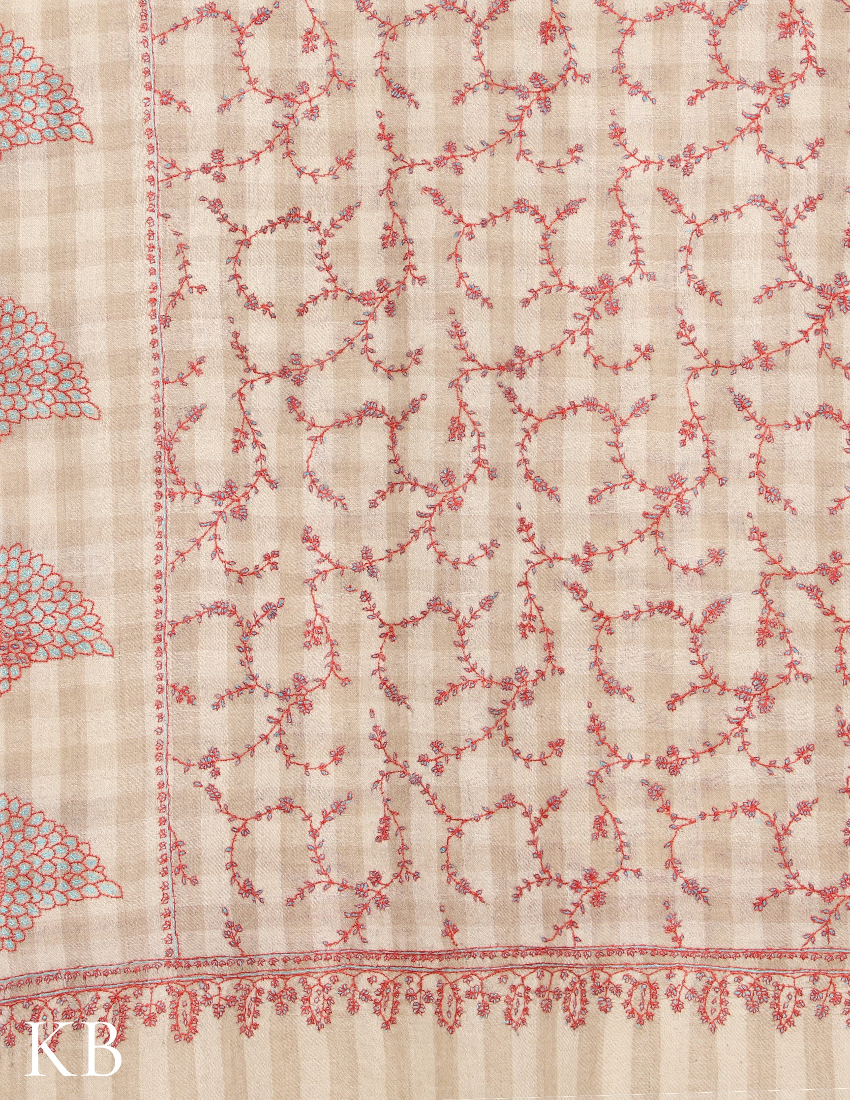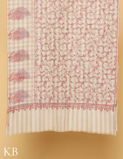Buttercream Stripped Sozni Embroidere Pure Pashmina Stole
