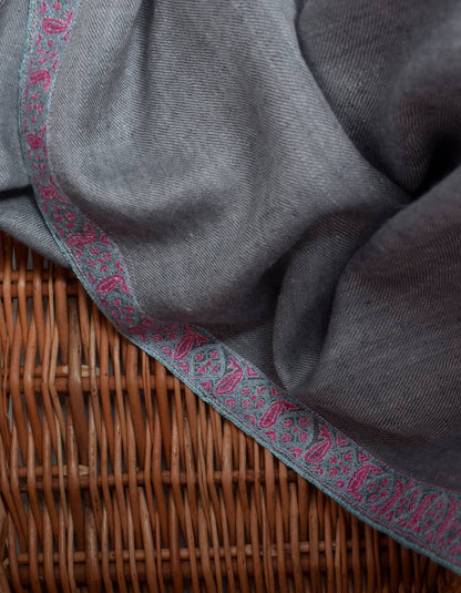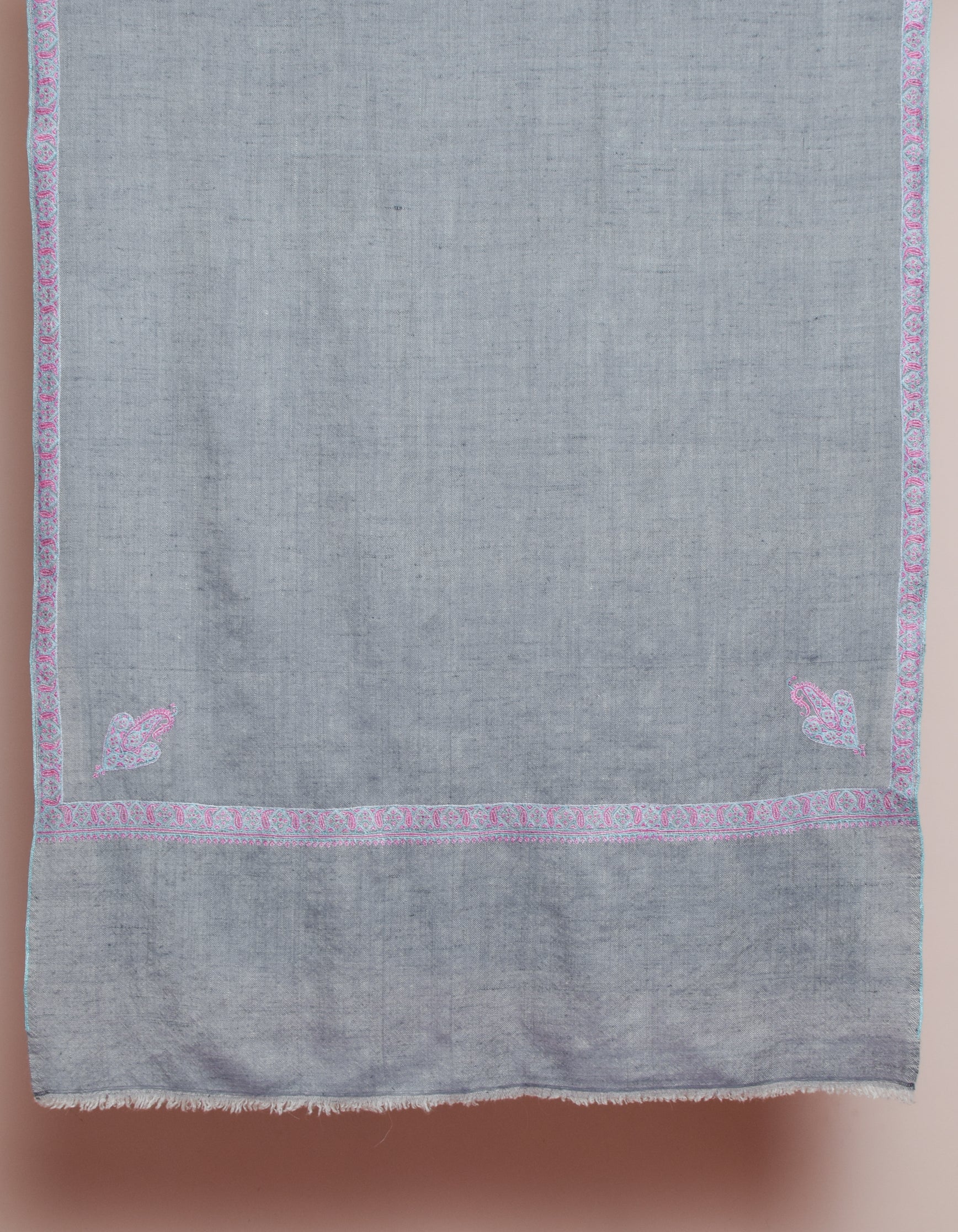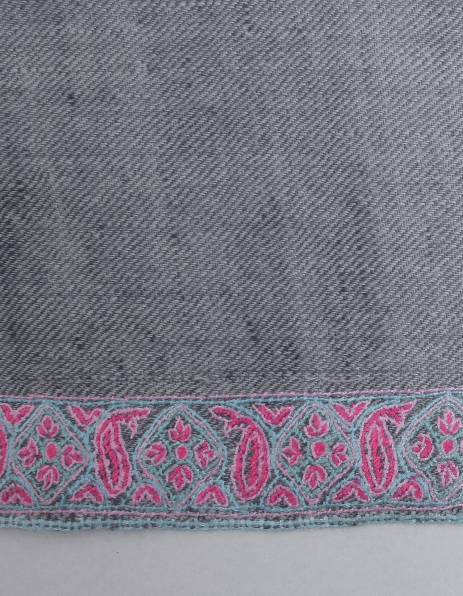 PRODUCT DESCRIPTION: Sense the heartfelt touch of skilled hands that have lovingly created this cashmere pashmina stole in a beautiful Kashmir blue, adorned with sozni embroidery in soft shades of pink, blue, and sea green. Each inch of this stole reflects the spirit and heritage of Kashmir. This cashmere stole represents a true labour of love, crafted with care and devotion. You deserve to wrap yourself in history's special, an heirloom that speaks to your heart and connects you to a tradition that transcends time.