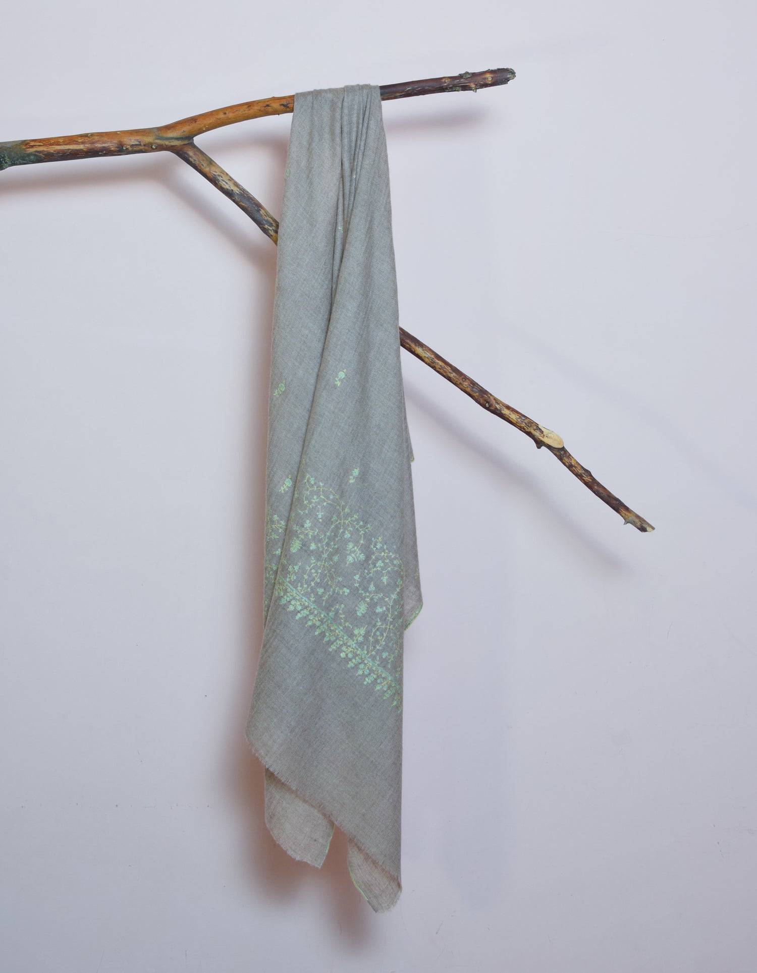 Pale Khaki Handwoven Sozni Embroidered Cashmere Pashmina Stole