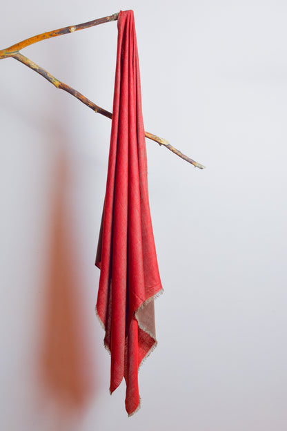 PRODUCT DESCRIPTION: An art that has been passed down through generations. One thread woven over another, and then another—this is how it goes. A labour of love crafted on a traditional loom. Every strand of this luxurious fabric tells the story of skilled artisans who dedicate months to creating a luxury of warmth and grace. With deep dark red on one side and refined brownish-grey on the other, this pashmina offers unmatched versatility. A simple flip over the shoulders transforms your look, making it perfect for any mood or occasion. A testament to the patience and precision only handcrafting can offer.