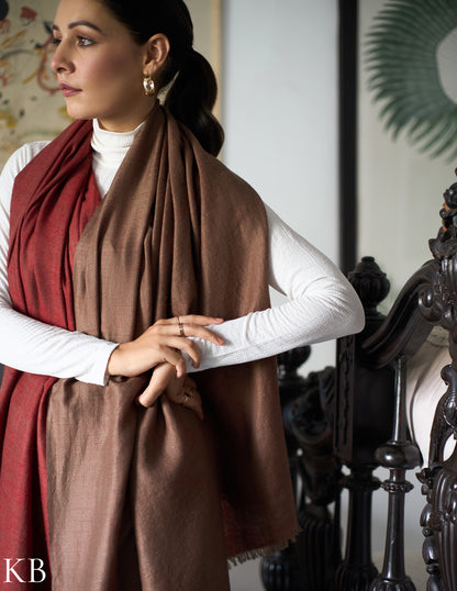 Brownish Red Handwoven Reversible Cashmere Pashmina Shawl