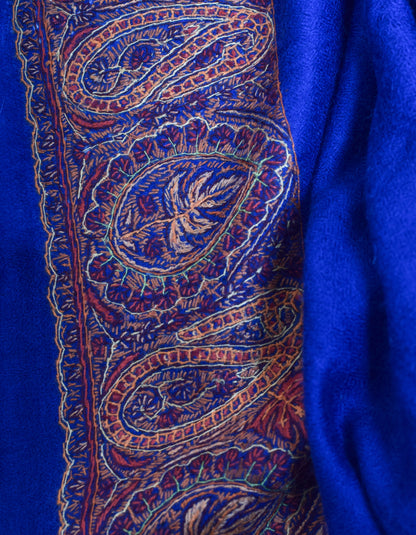 Royal Blue Handwoven Palla Embroidered Cashmere Pashmina Shawl