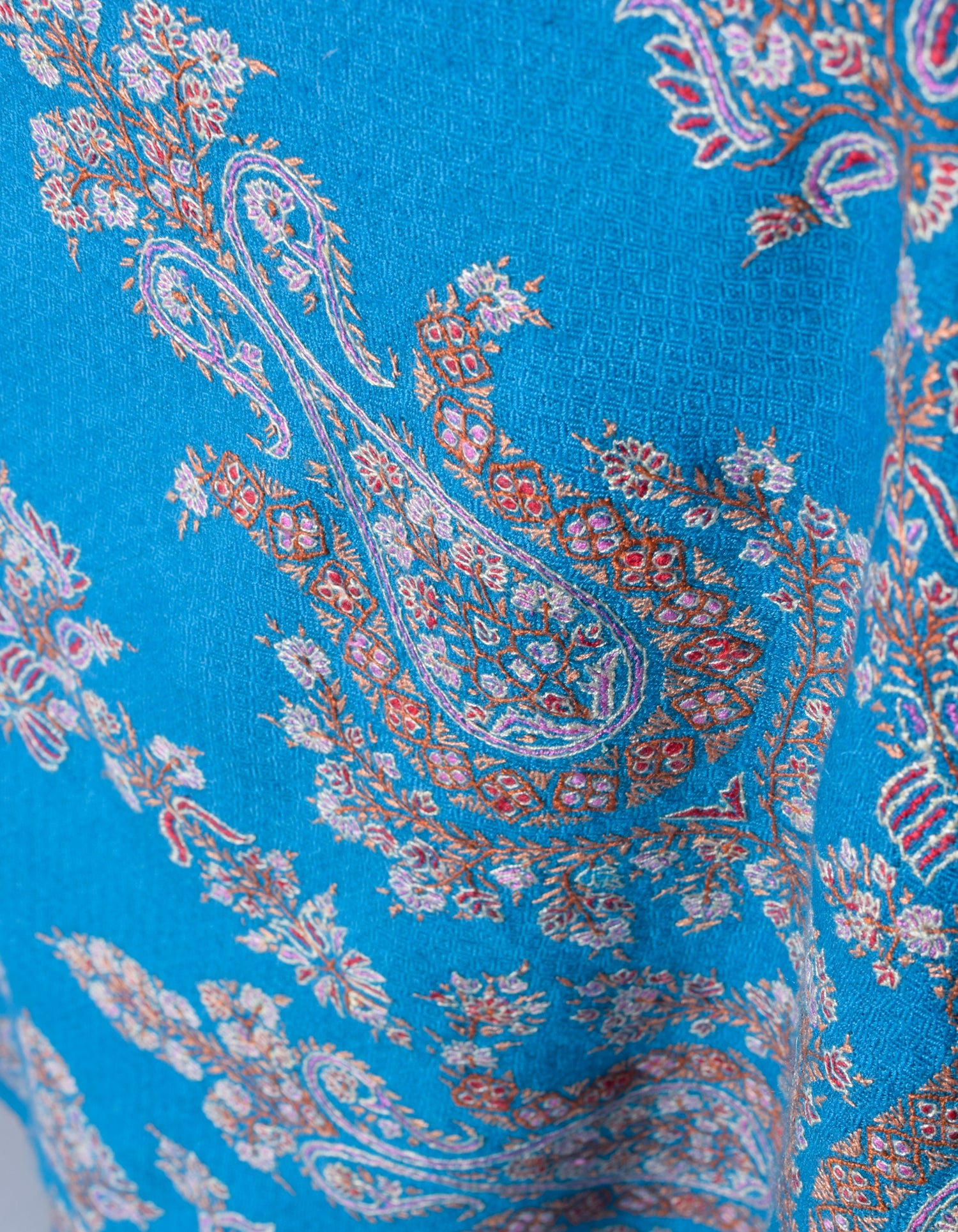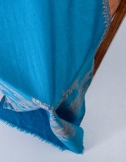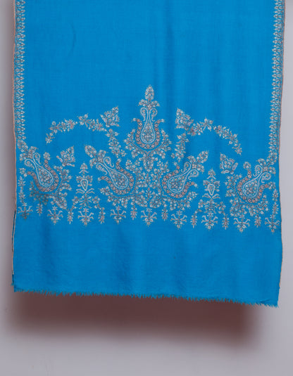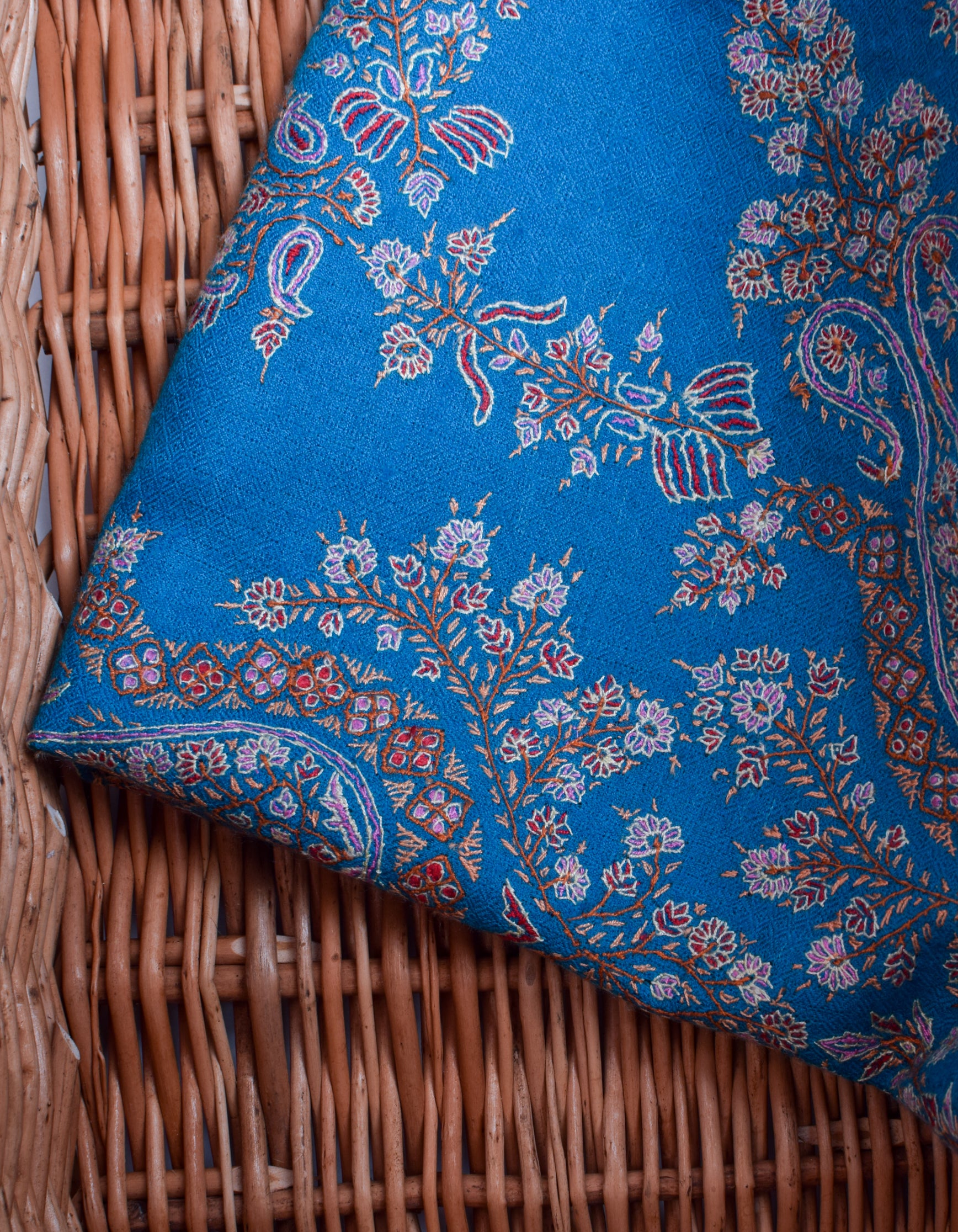 Deep Sky Handwoven Sozni Palla Embroidered Cashmere Pashmina Stole