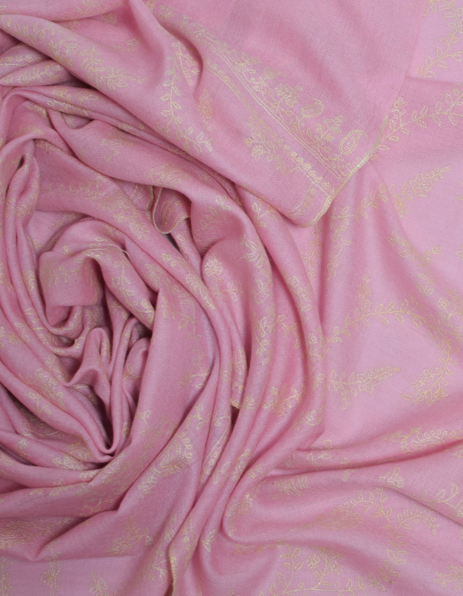 Soft pink Handwoven Jaali Embroidered Cashmere Pashmina Stole