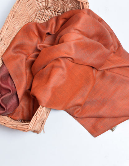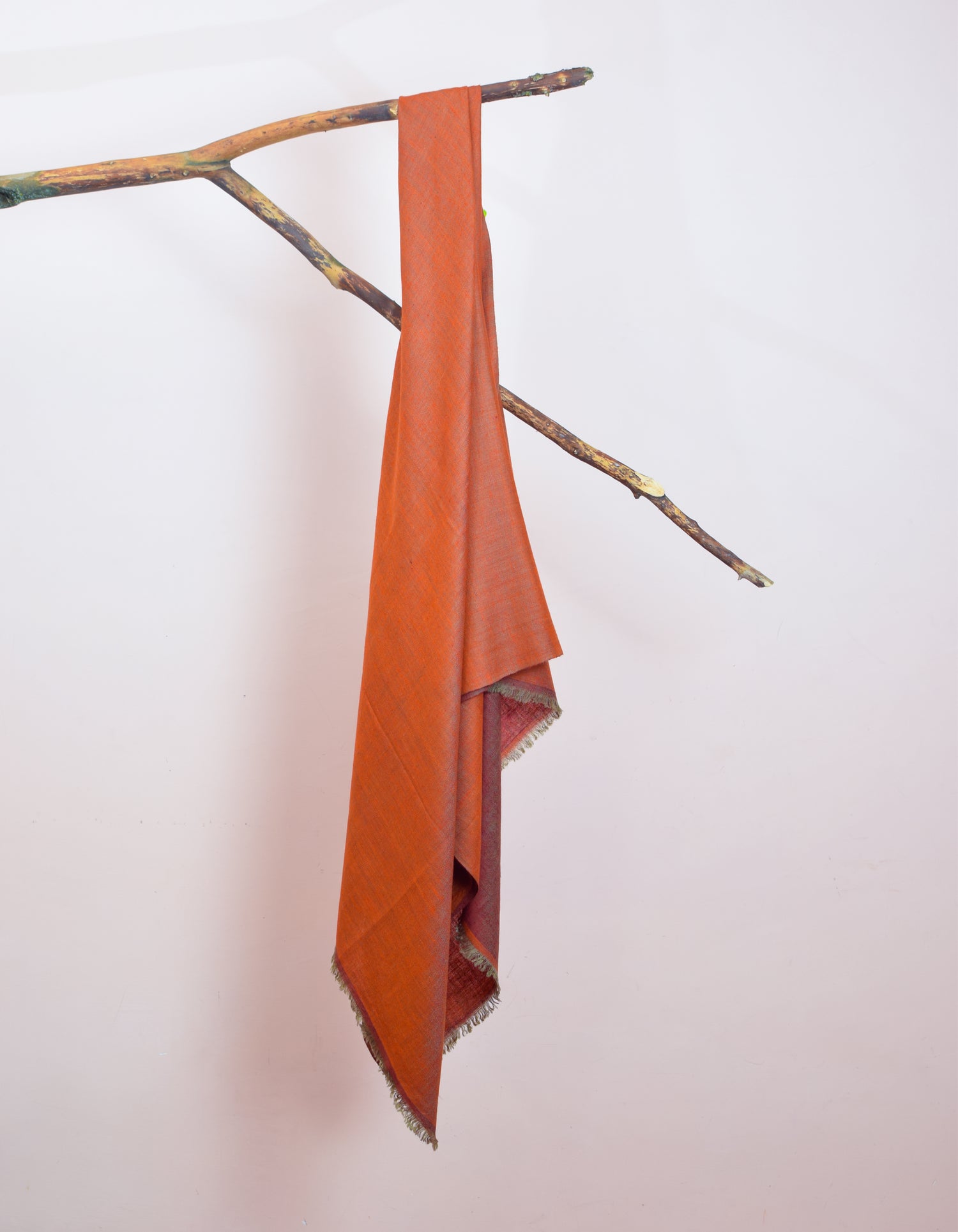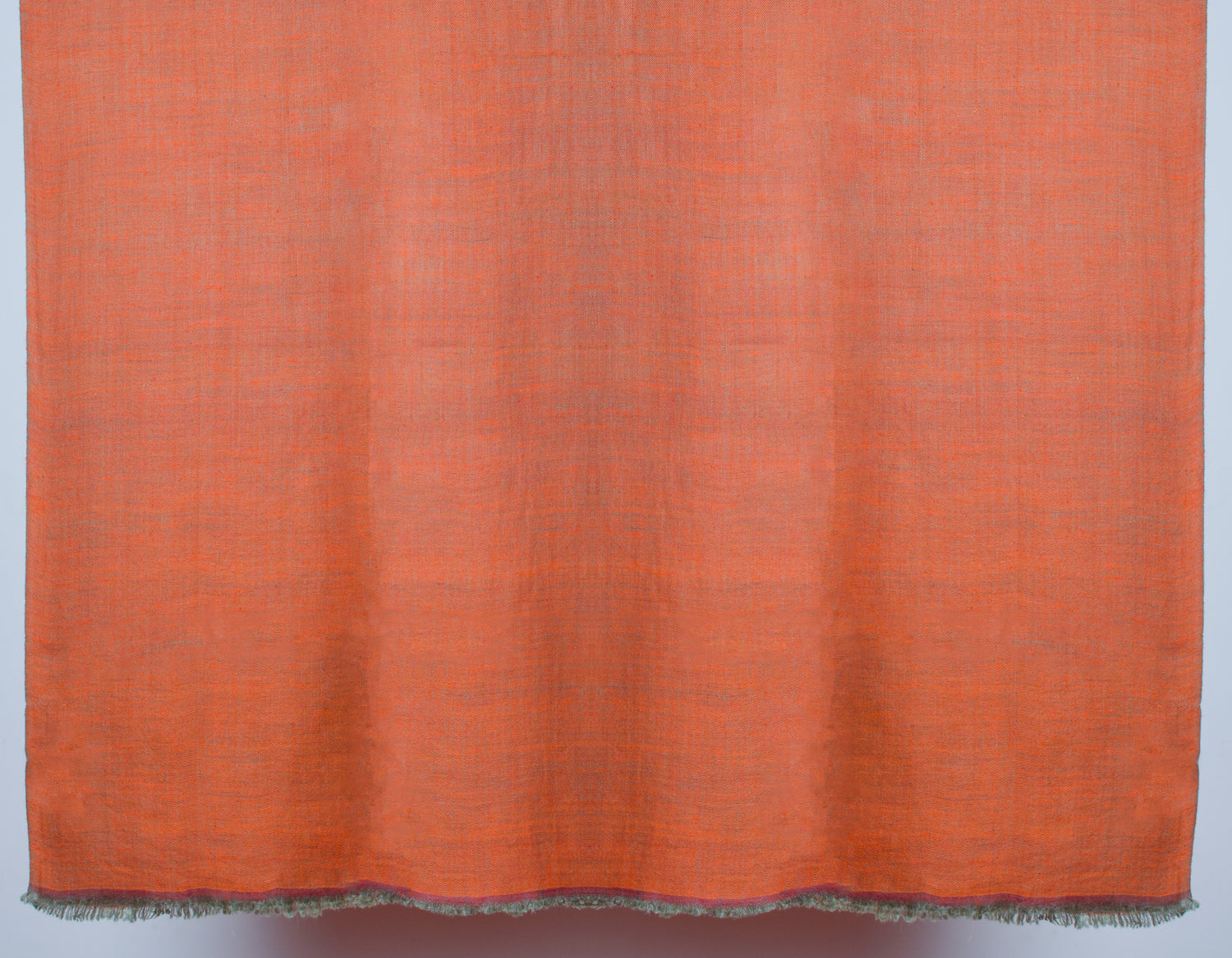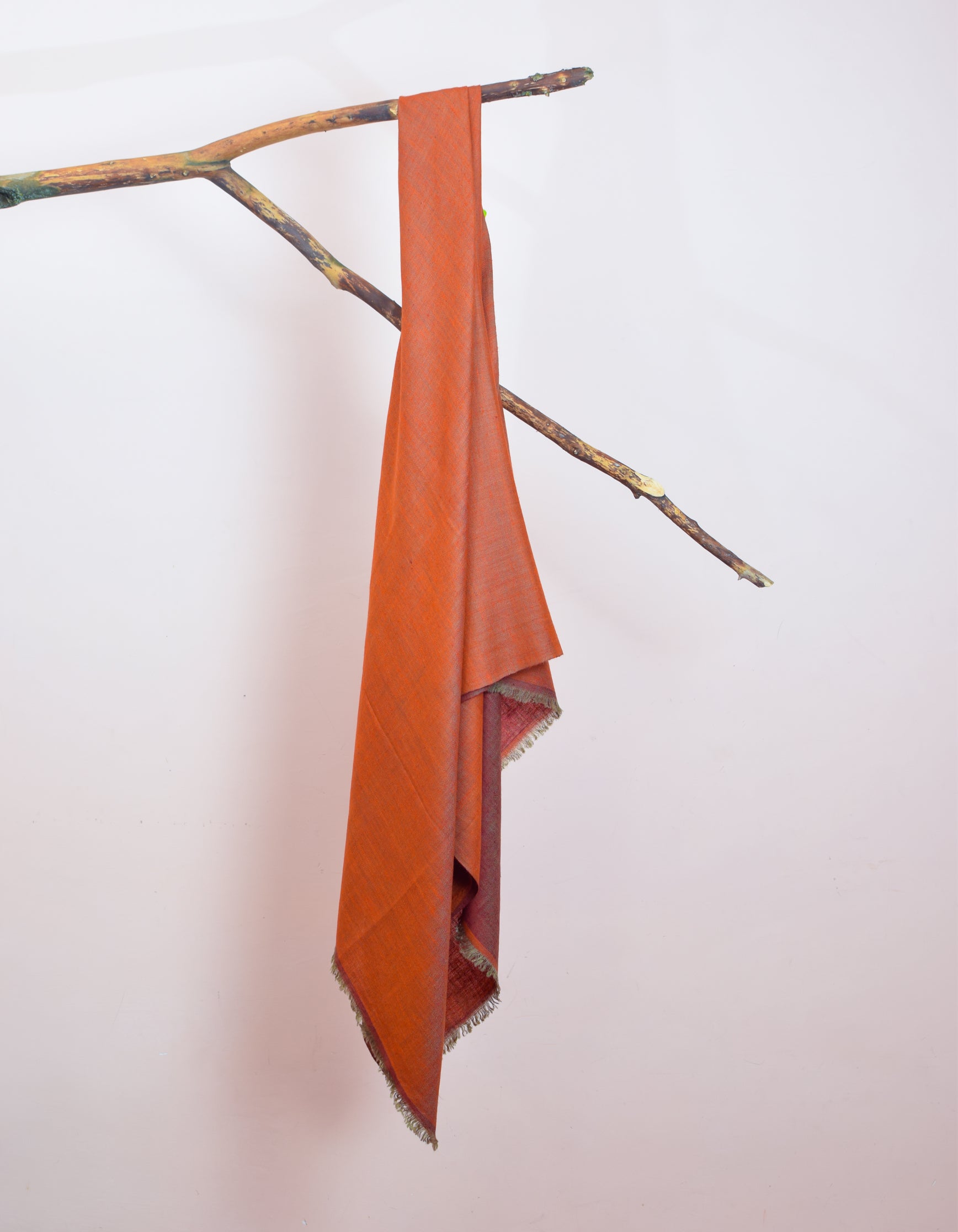 PRODUCT DESCRIPTION: Sense the heartfelt touch of skilled hands that have lovingly created this reversible cashmere pashmina shawl in persian red and apricot orange. Each inch of this shawl reflects the spirit and heritage of Kashmir. Imagine the countless hours spent weaving each delicate thread, as artisans infuse their generational craft into every piece. This cashmere shawl represents a true labour of love, crafted with care and devotion. You deserve to wrap yourself in history's special, an heirloom that speaks to your heart and connects you to a tradition that transcends time.