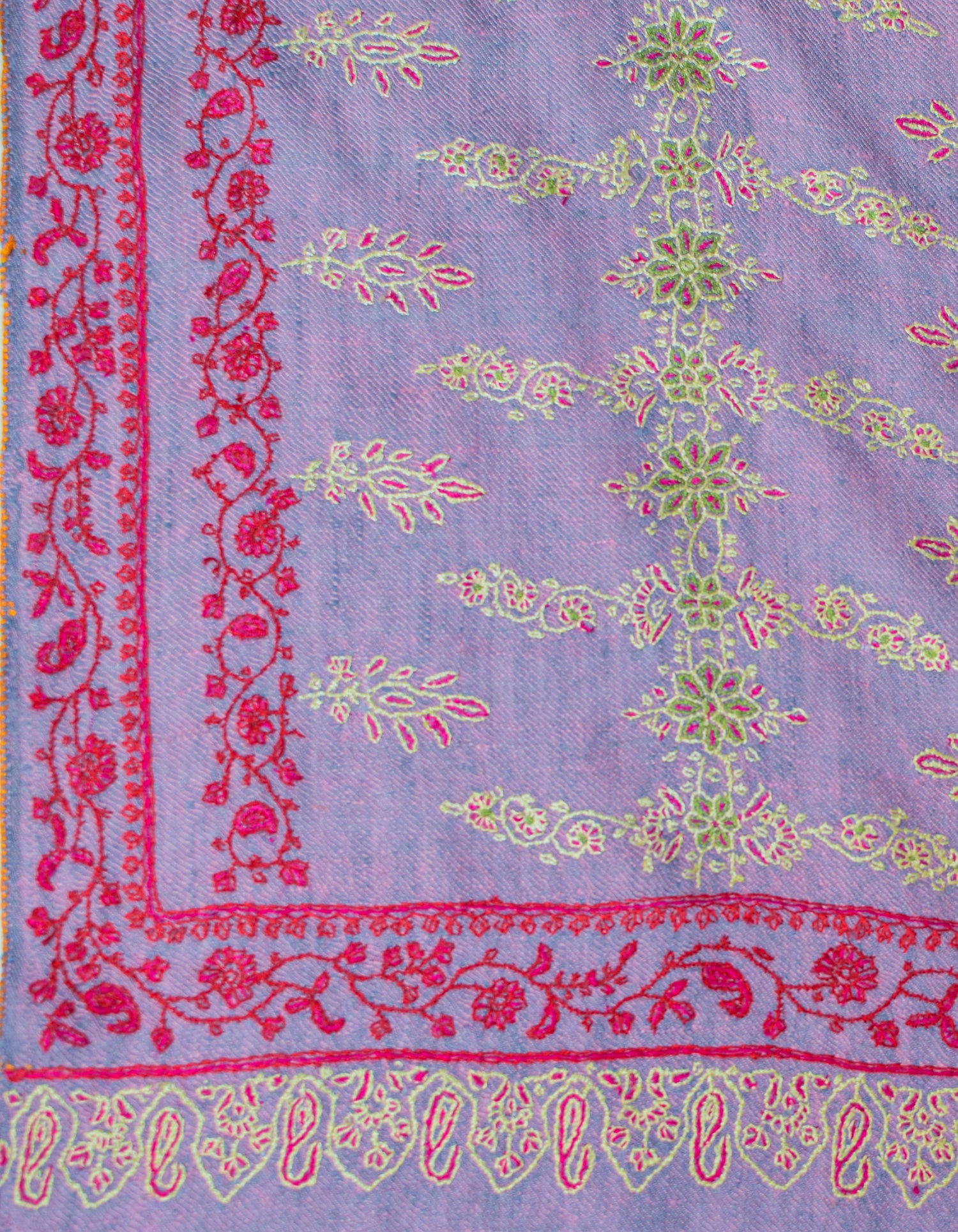Modern Sozni Embroidered Handwoven Pink-Grey Pashmina Stole