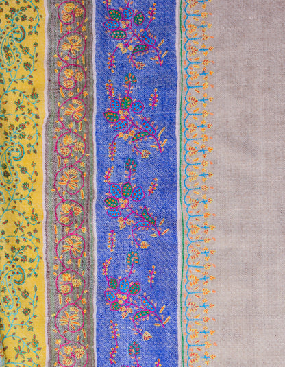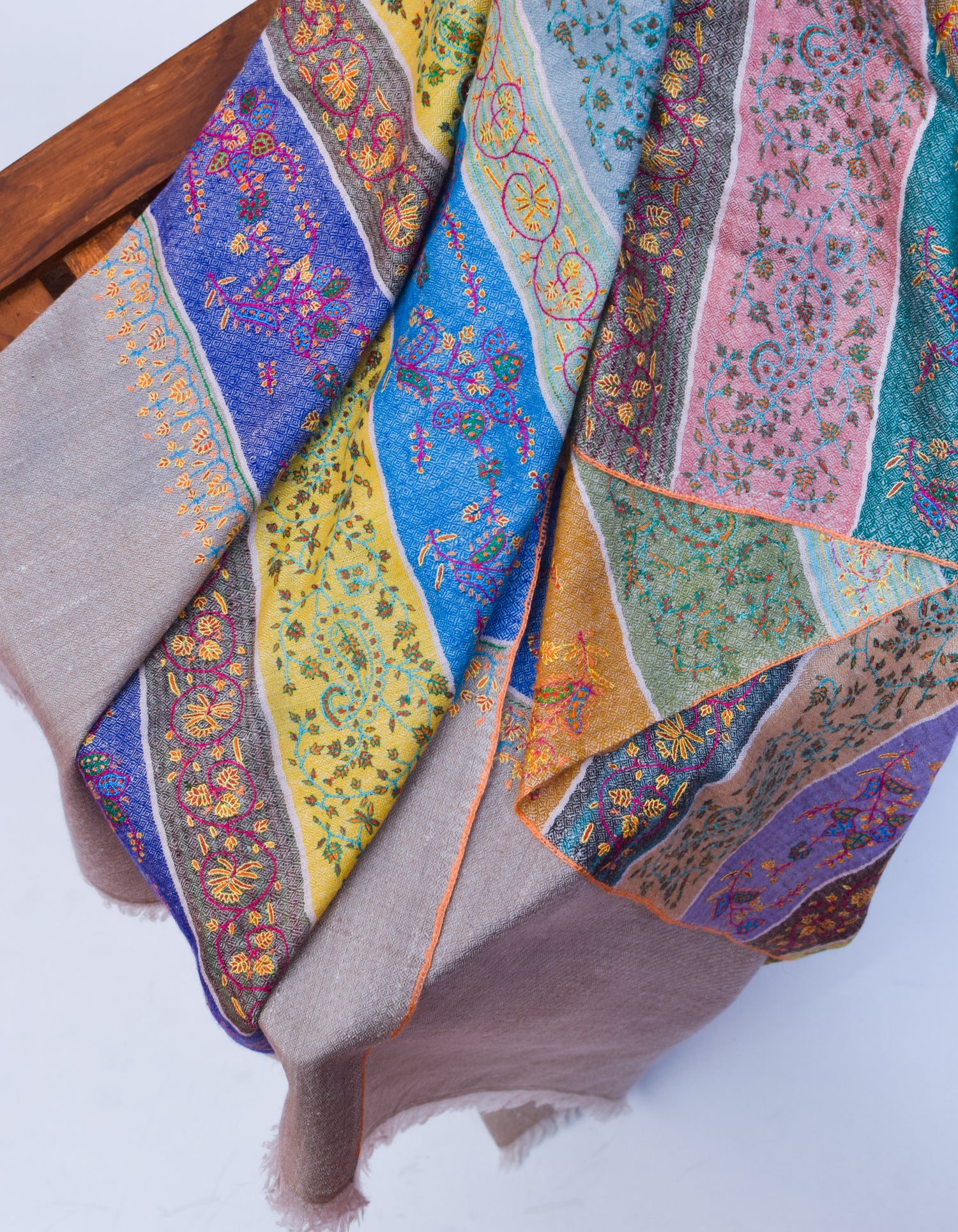 Modern Toned Handwoven Sozni Embroidered Pashmina Stripes Stole