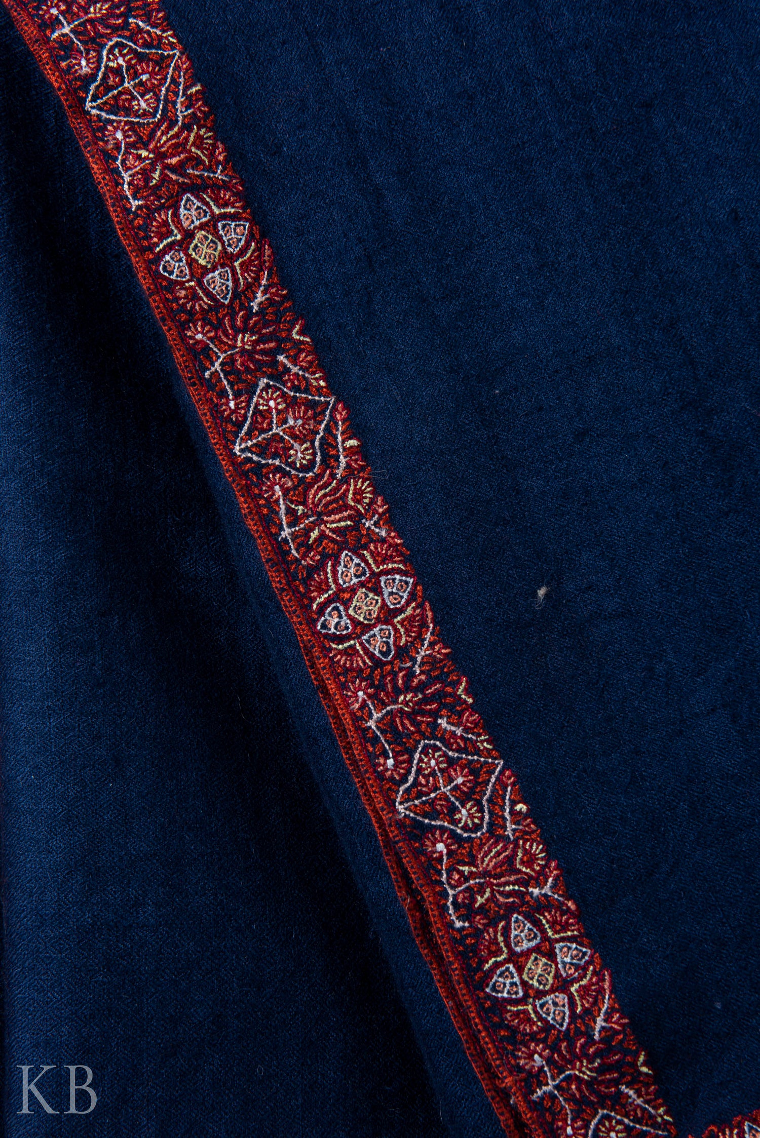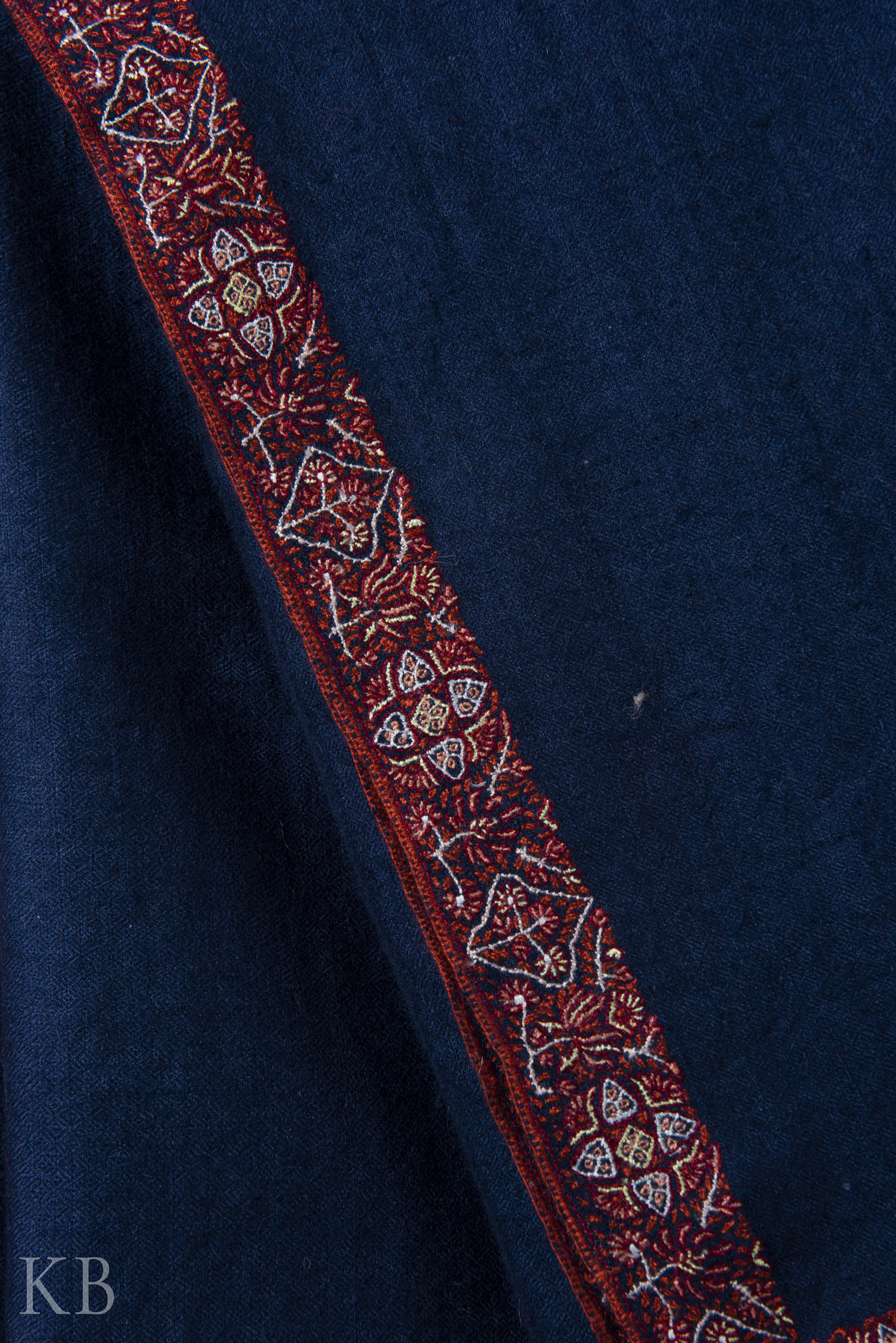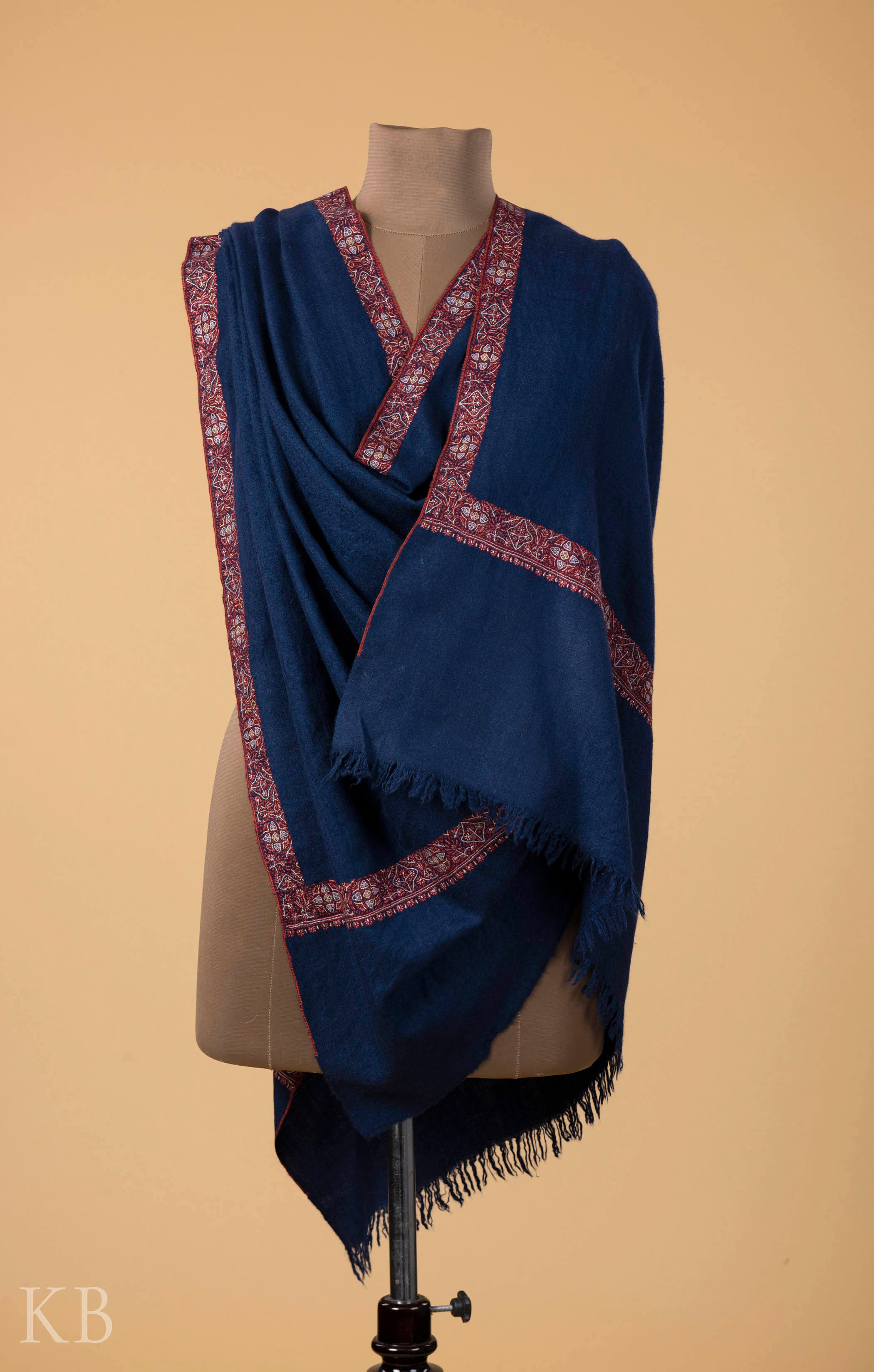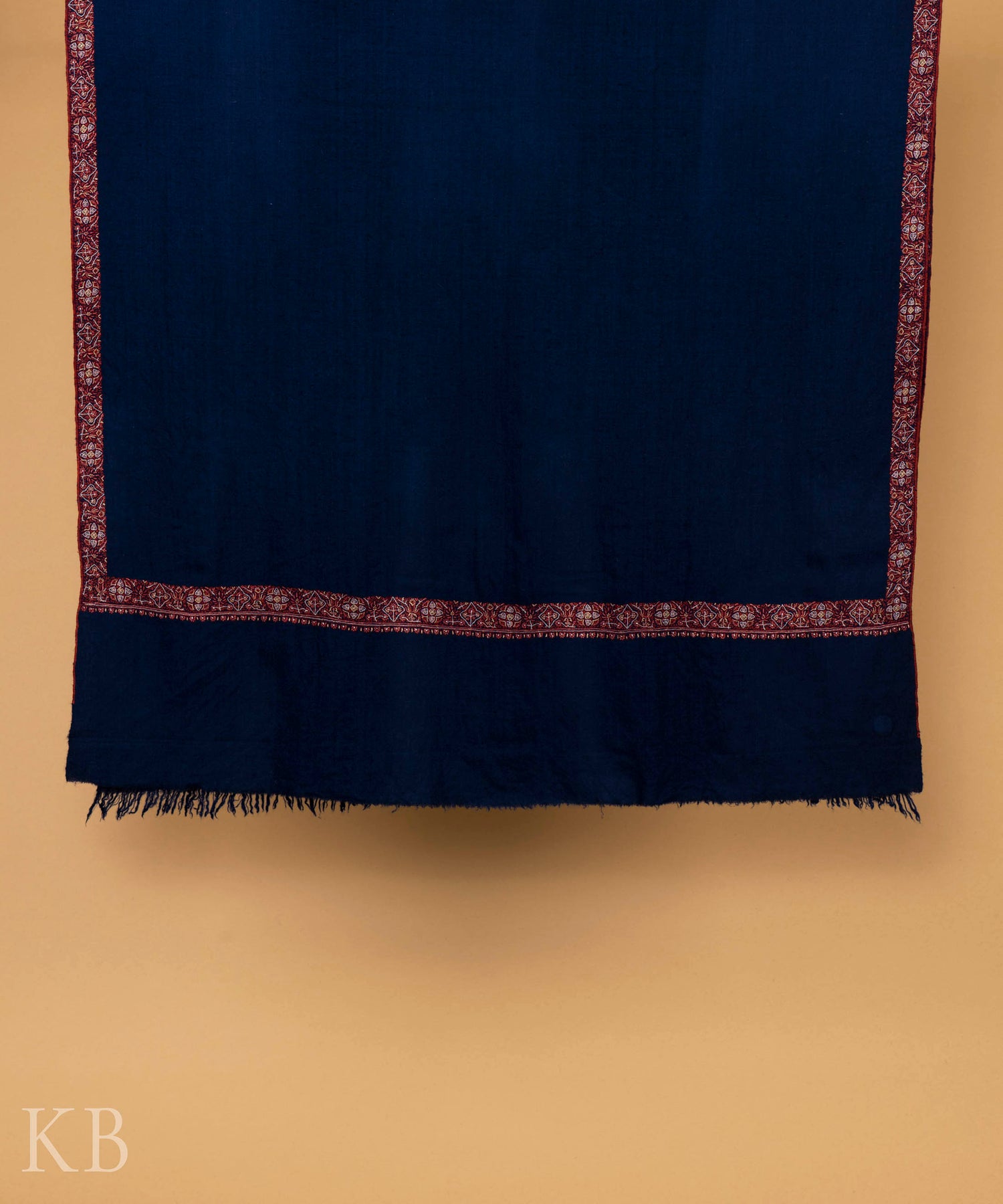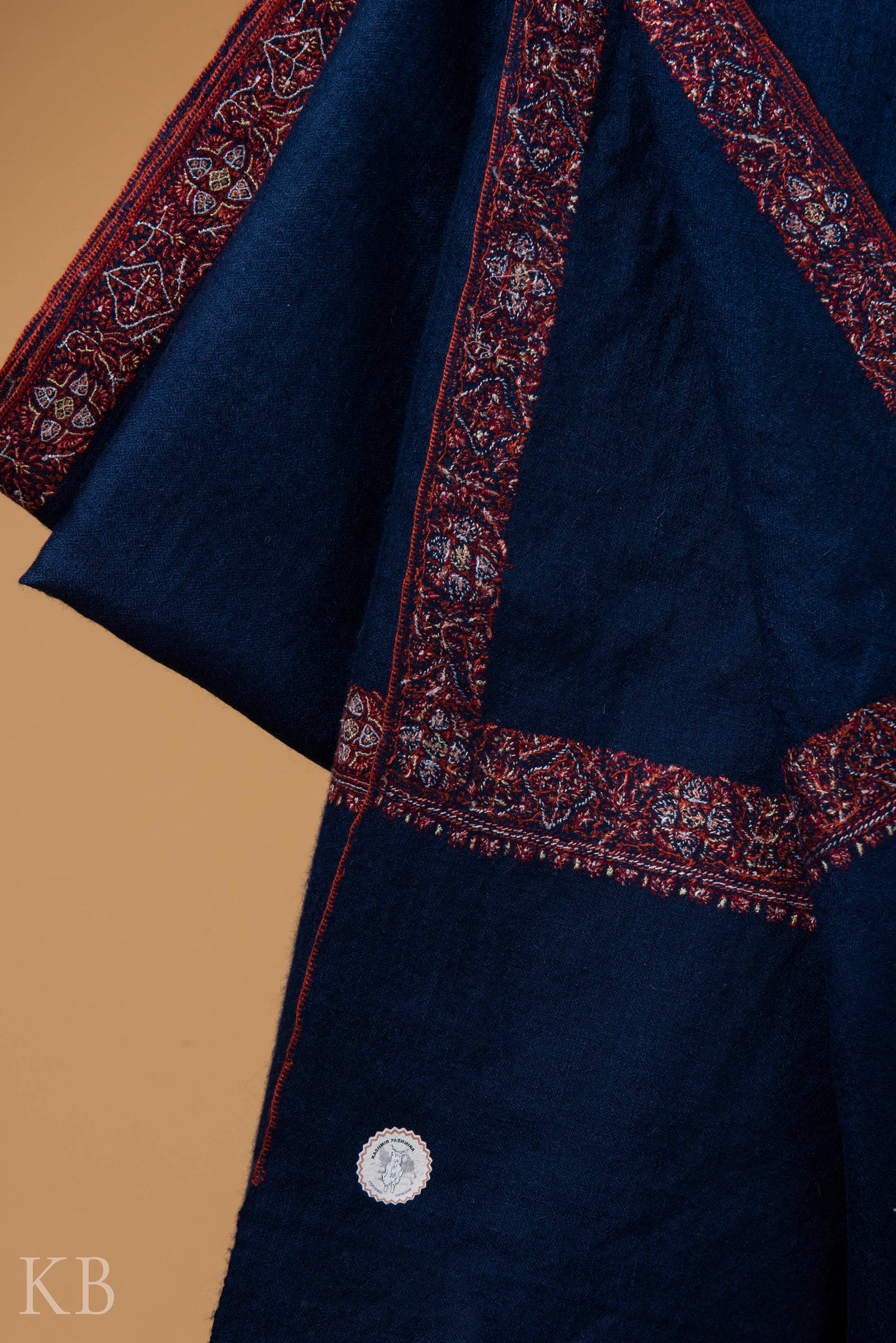 Dark Blue Sozni Embroidered GI Pashmina Shawl