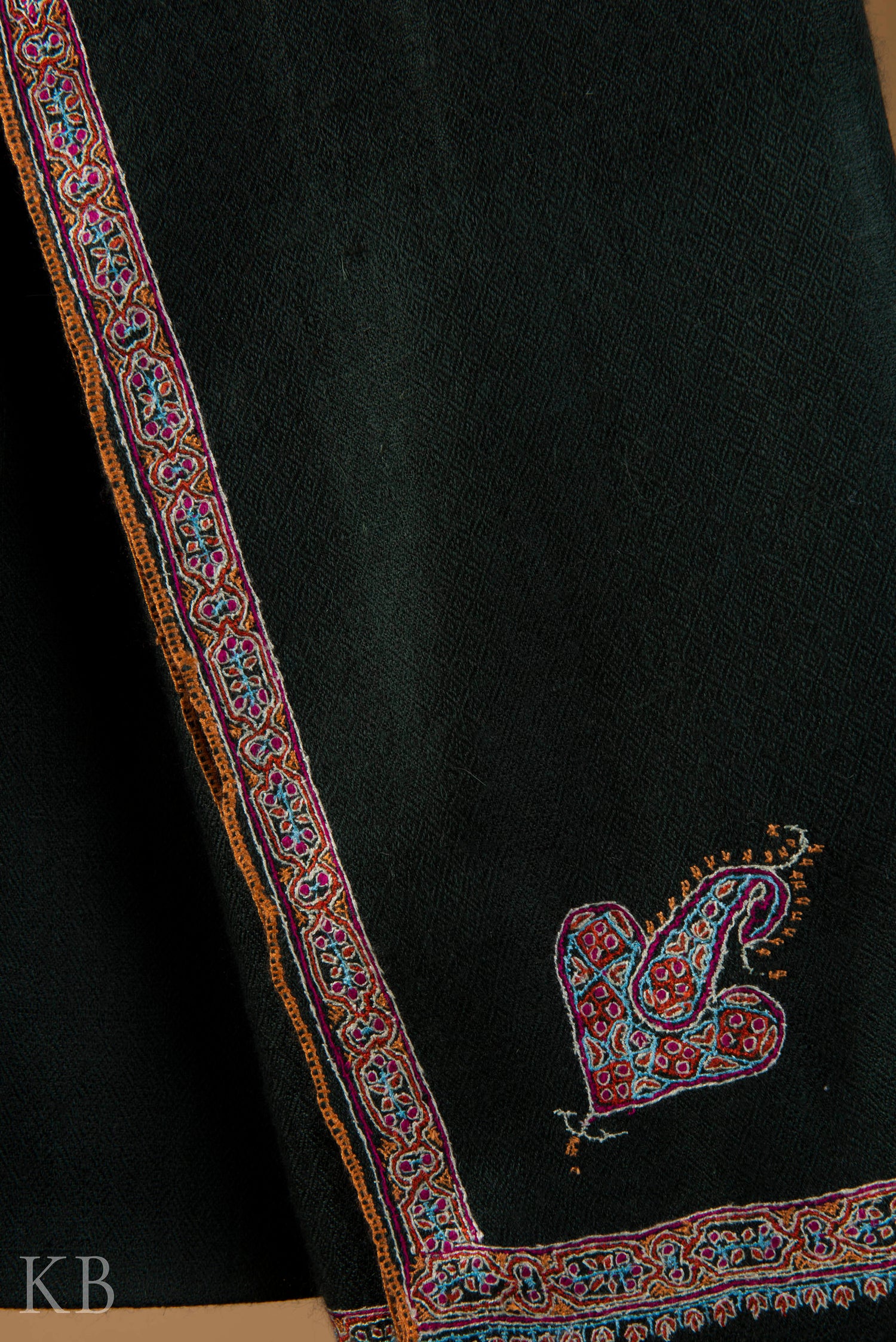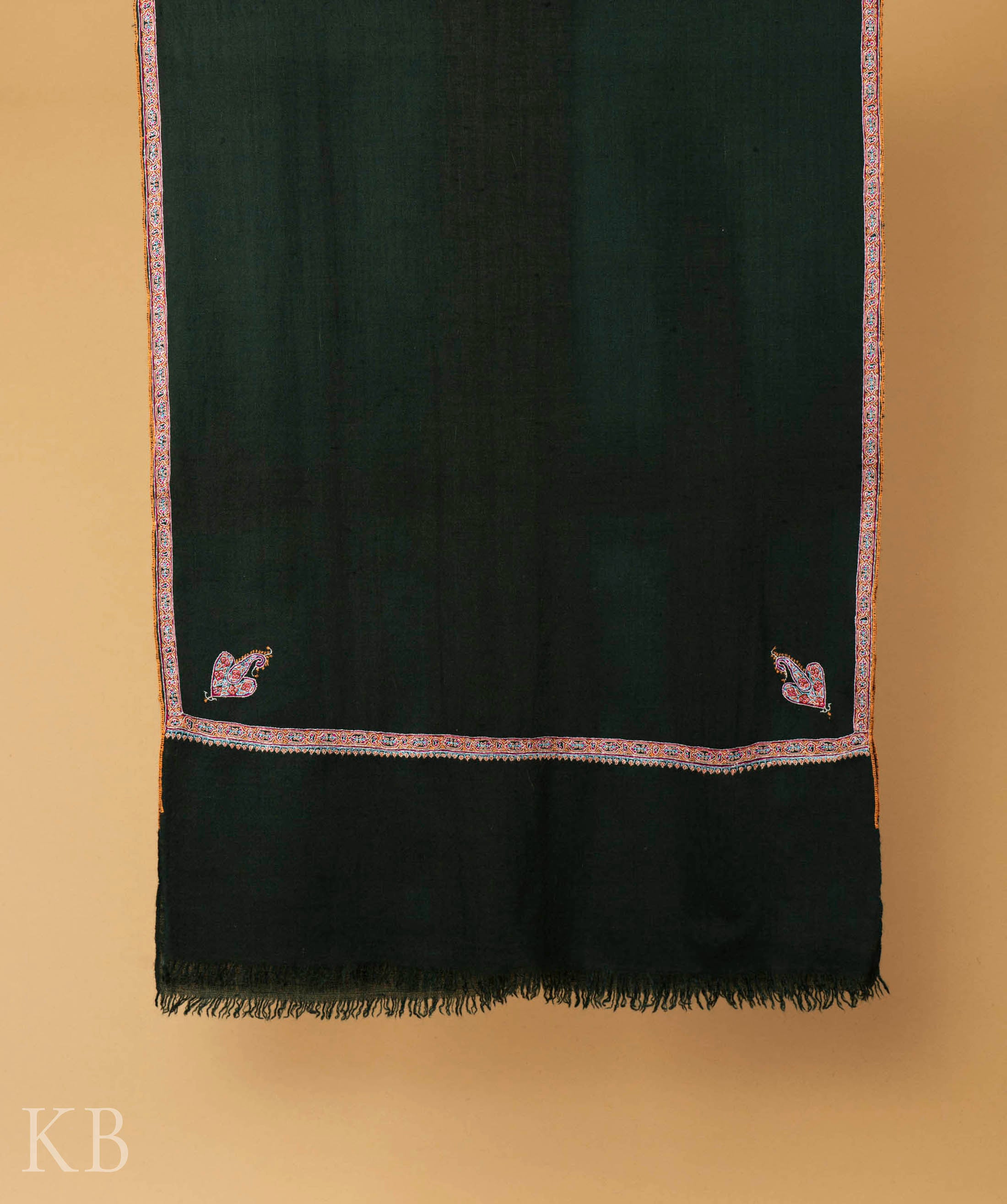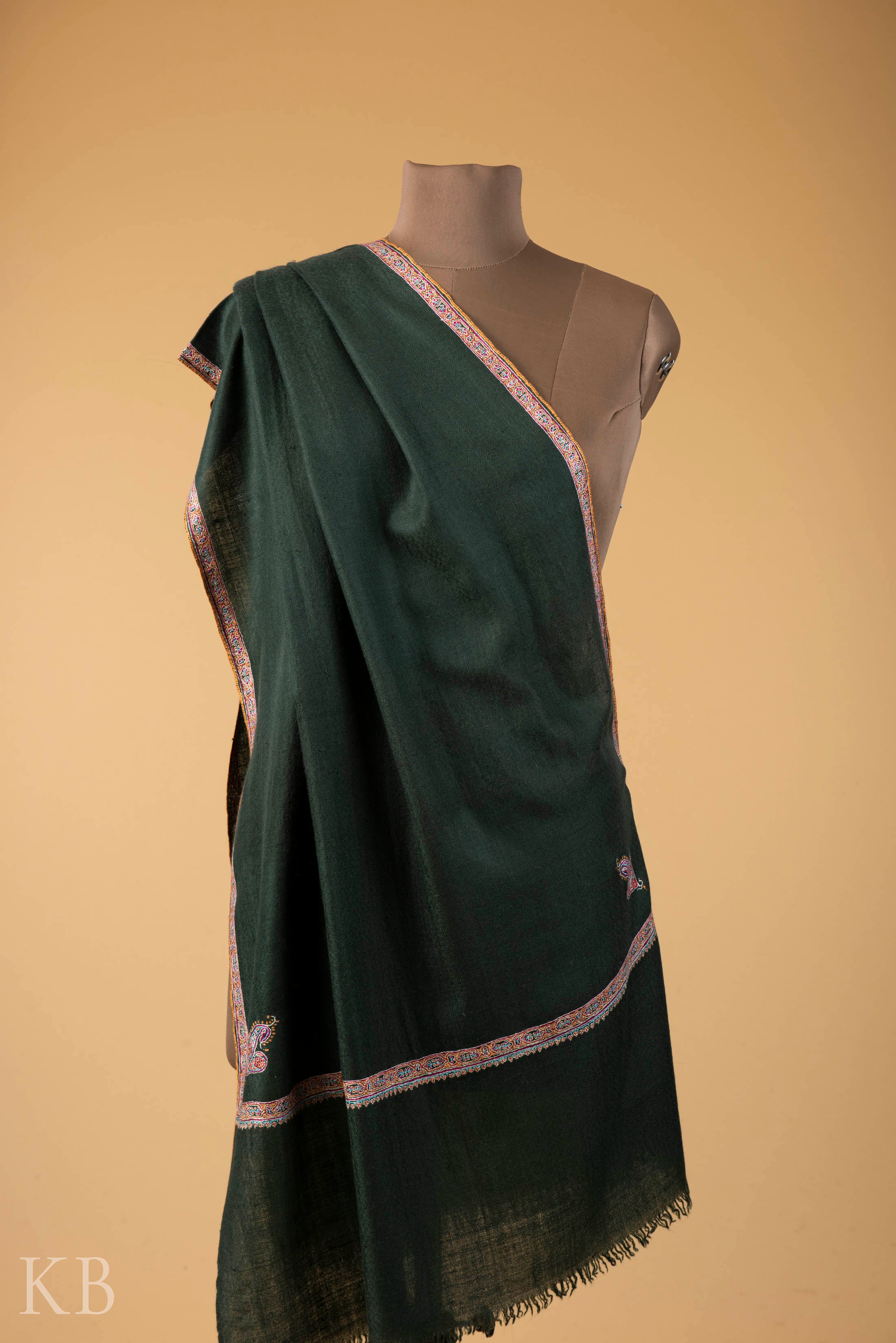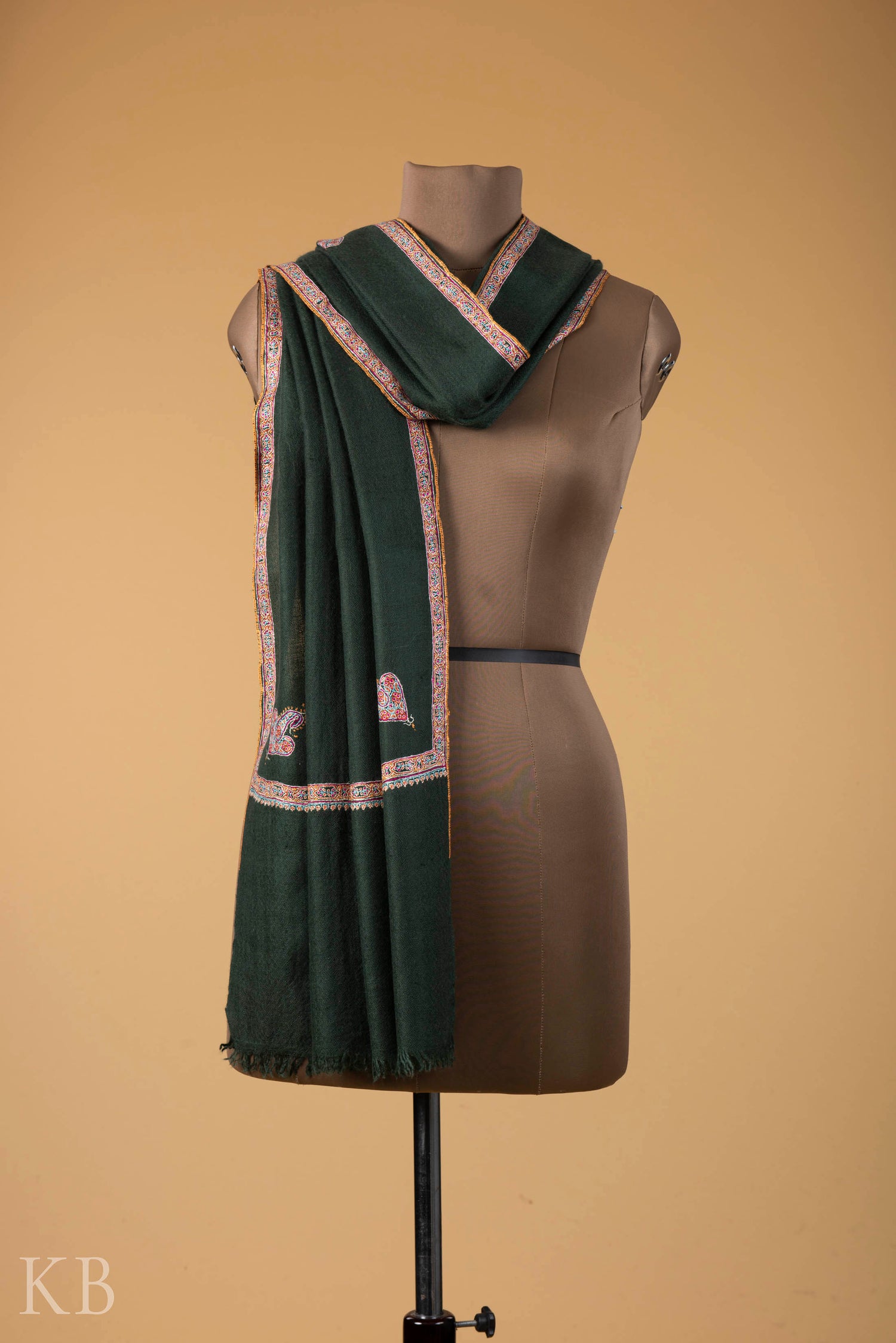 Emerald Green Sozni Embroidered Pashmina Stole - Kashmir Box
