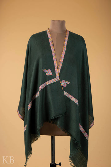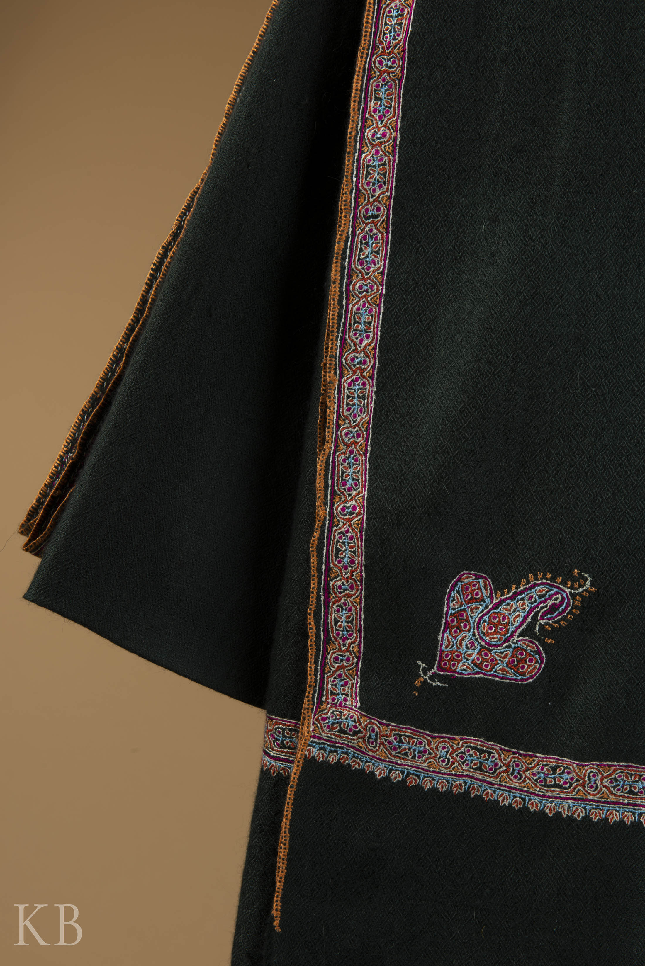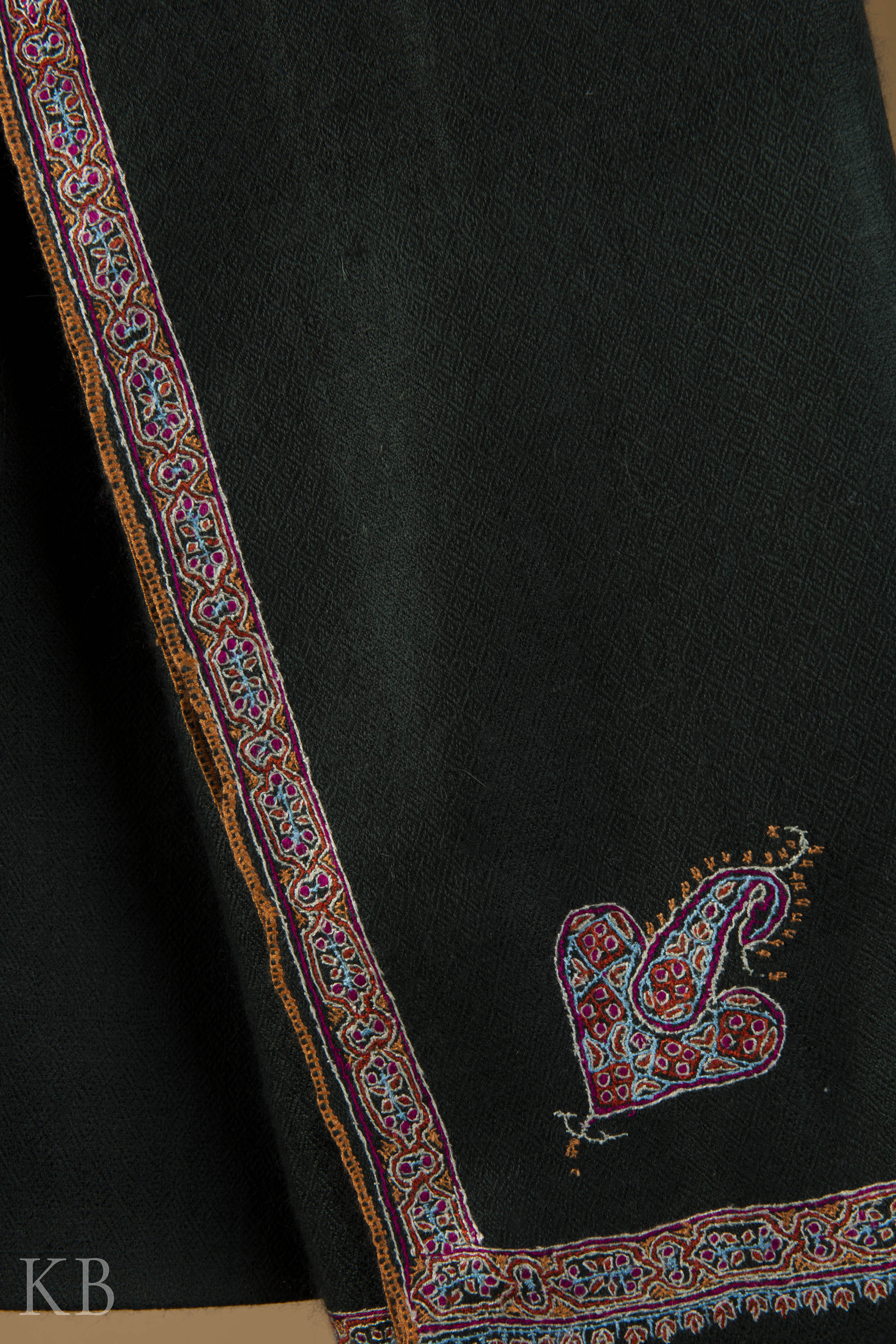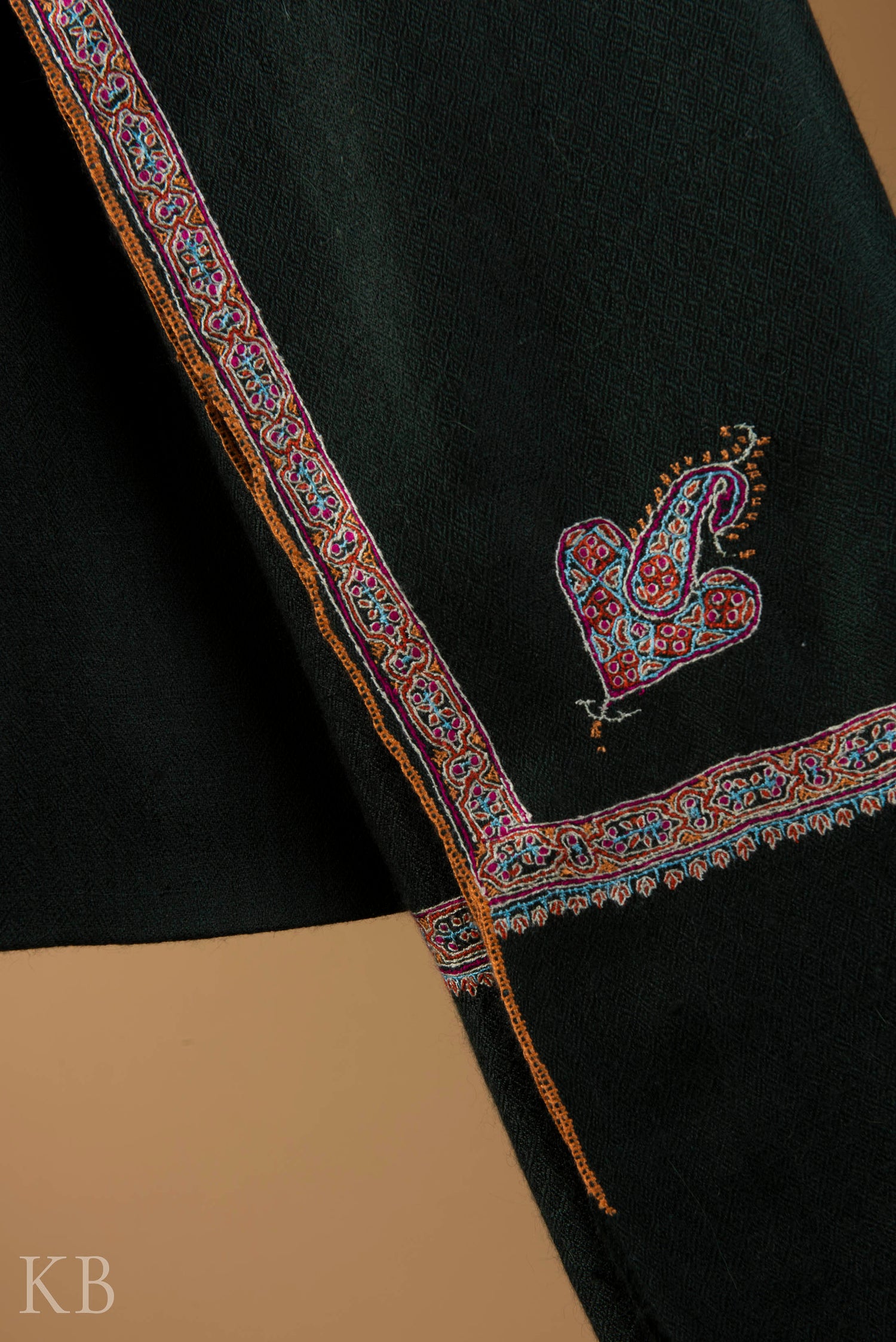 Emerald Green Sozni Embroidered Pashmina Stole - Kashmir Box