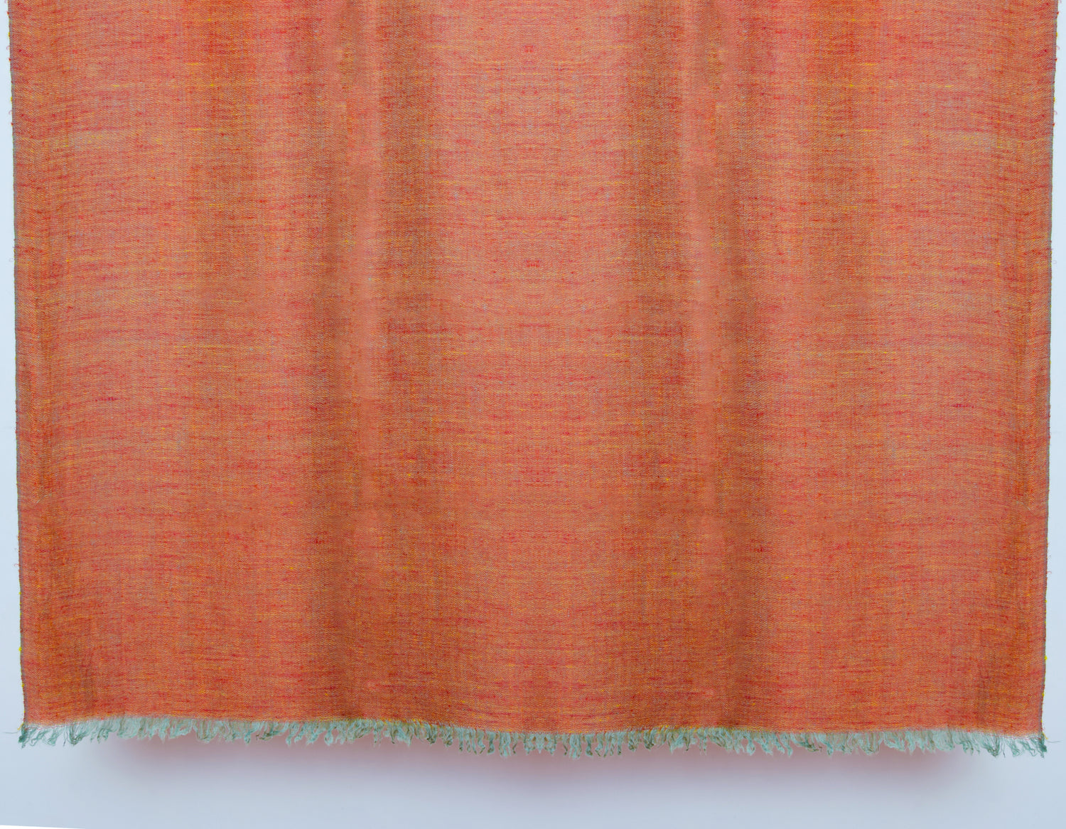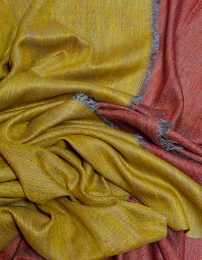 PRODUCT DESCRIPTION: Connect with the hands that crafted this reversible cashmere pashmina shawl, displaying mustard yellow and tuscan brick red. Each inch of this shawl reflects the spirit and heritage of Kashmir. Imagine the countless hours dedicated to weaving each delicate thread, as artisans infuse their generational craft into every piece. This cashmere shawl is truly a labour of love, crafted with care and devotion. You deserve to wear something that tells a story of tradition, artistry, and the joy of wearing a piece uniquely made just for you.