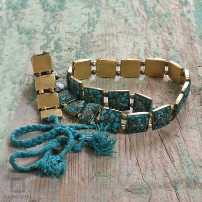 To glorify and resurrect the craft that once was, handpicked is a brilliantly done Turquoise belt which can breath a new life to any dress. The beauty of an accessory has been crafted by skilled craftsmen from Kashmir Valley to bring charm and style in how you style up and sustain their dying craft. The belt is a sequence of Turquoise Forms beads threaded together which contrasts any plain dress and inspires uniqueness in your overall look. Feminine in looks, handcrafted to perfection and stylish in appeal, accessorize your looks in the mesmerizing belt.