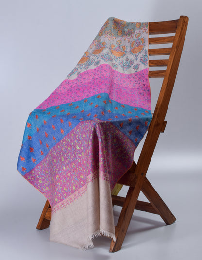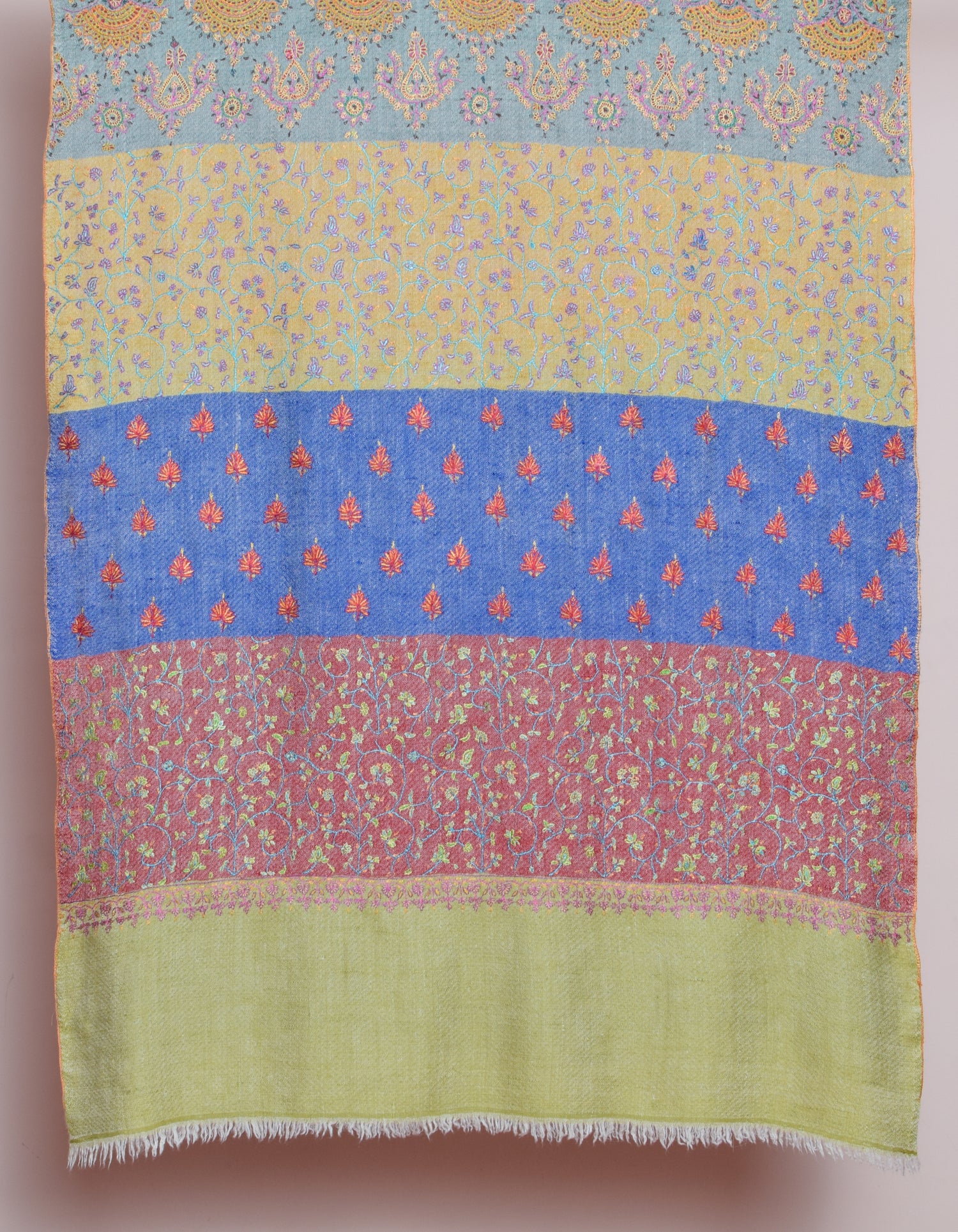 Modern Stripes Handwoven Multicolour Sozni Embroidered Cashmere Pashmina Stole