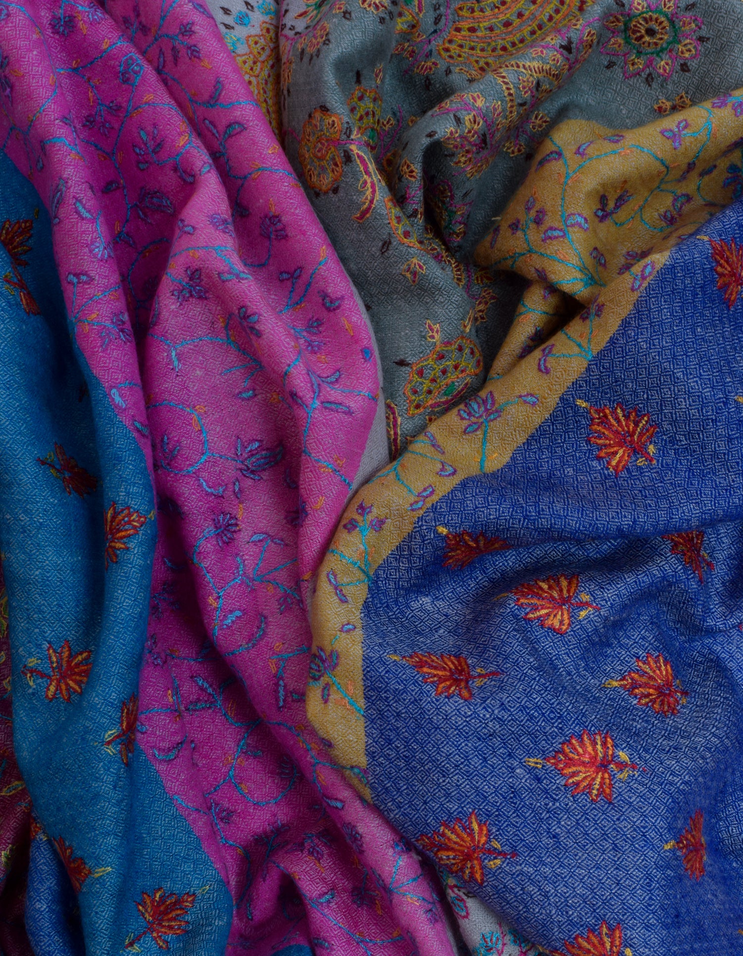 • Created by the hands of Kashmiri artisans, this luxurious Cashmere Pashmina features subtle variations in its fabrication and embroidery that serve as marks of authenticity, making it a one-of-a-kind beauty.