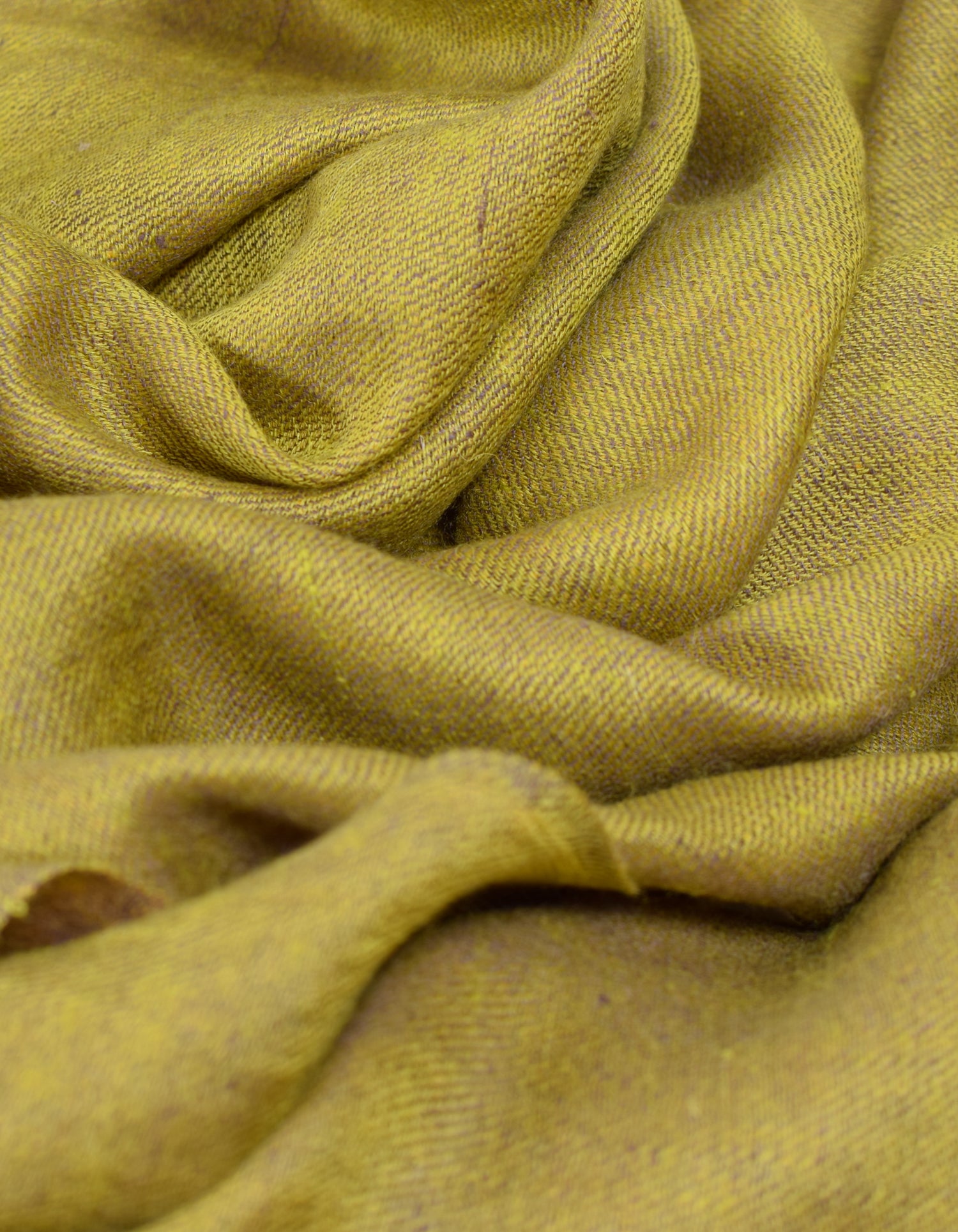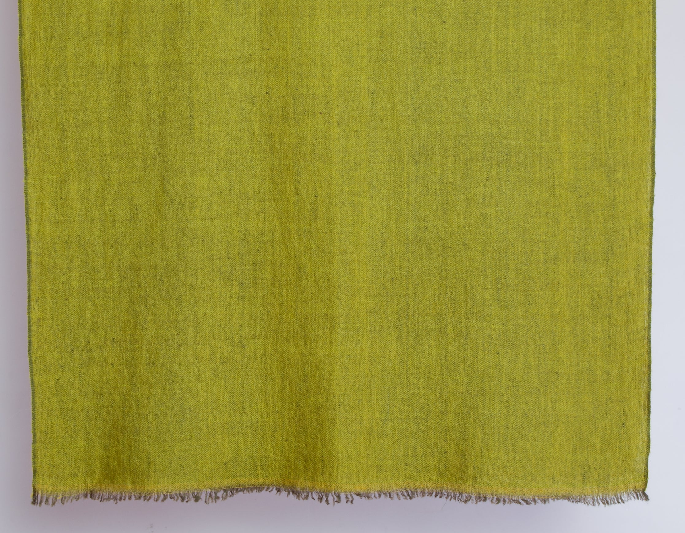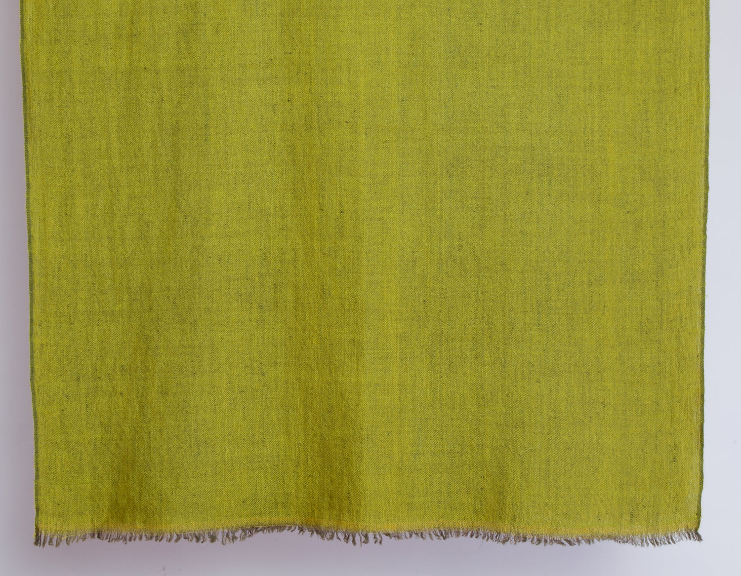 COLOUR: A dual-coloured cashmere pashmina featuring yellow and ginger green.
