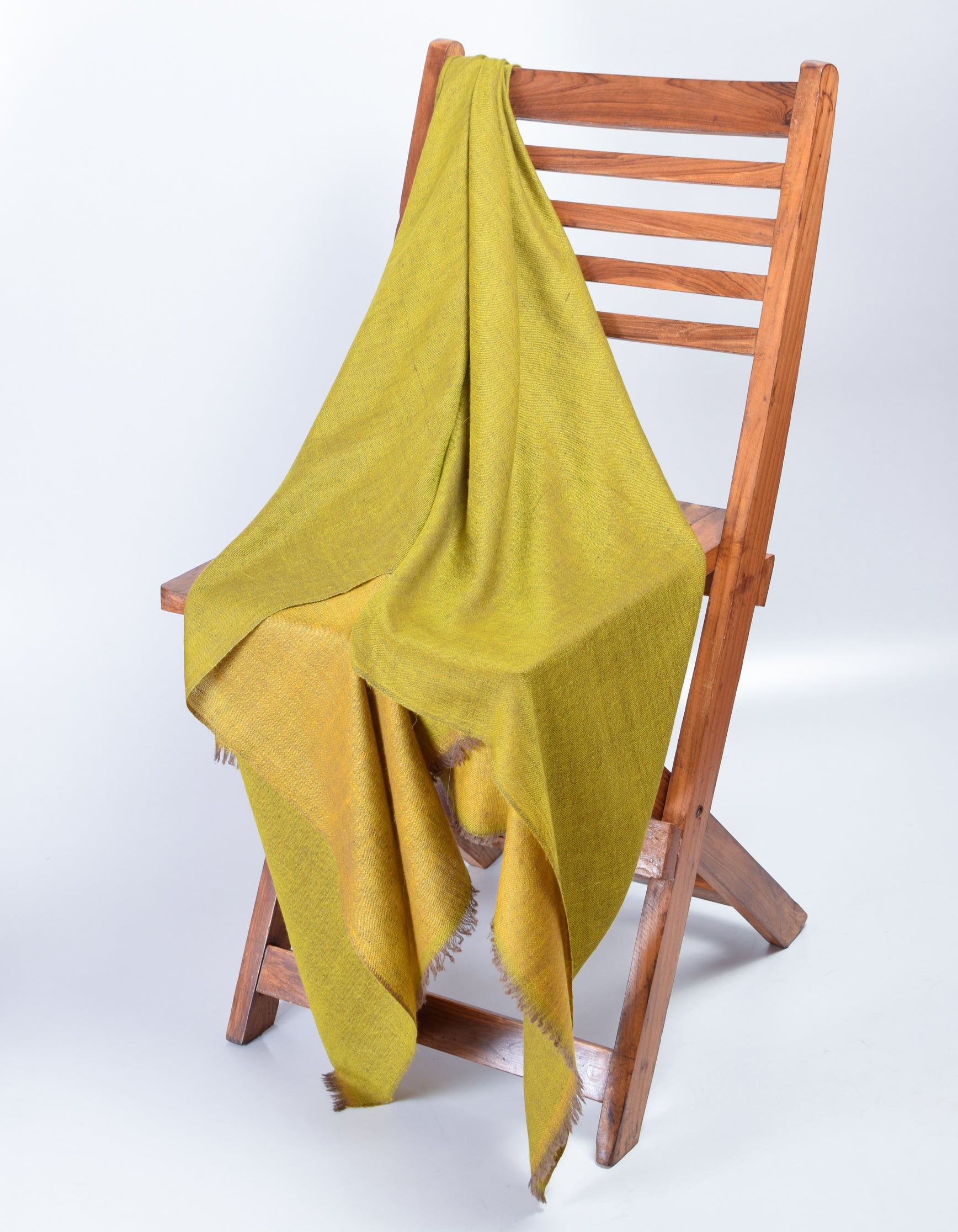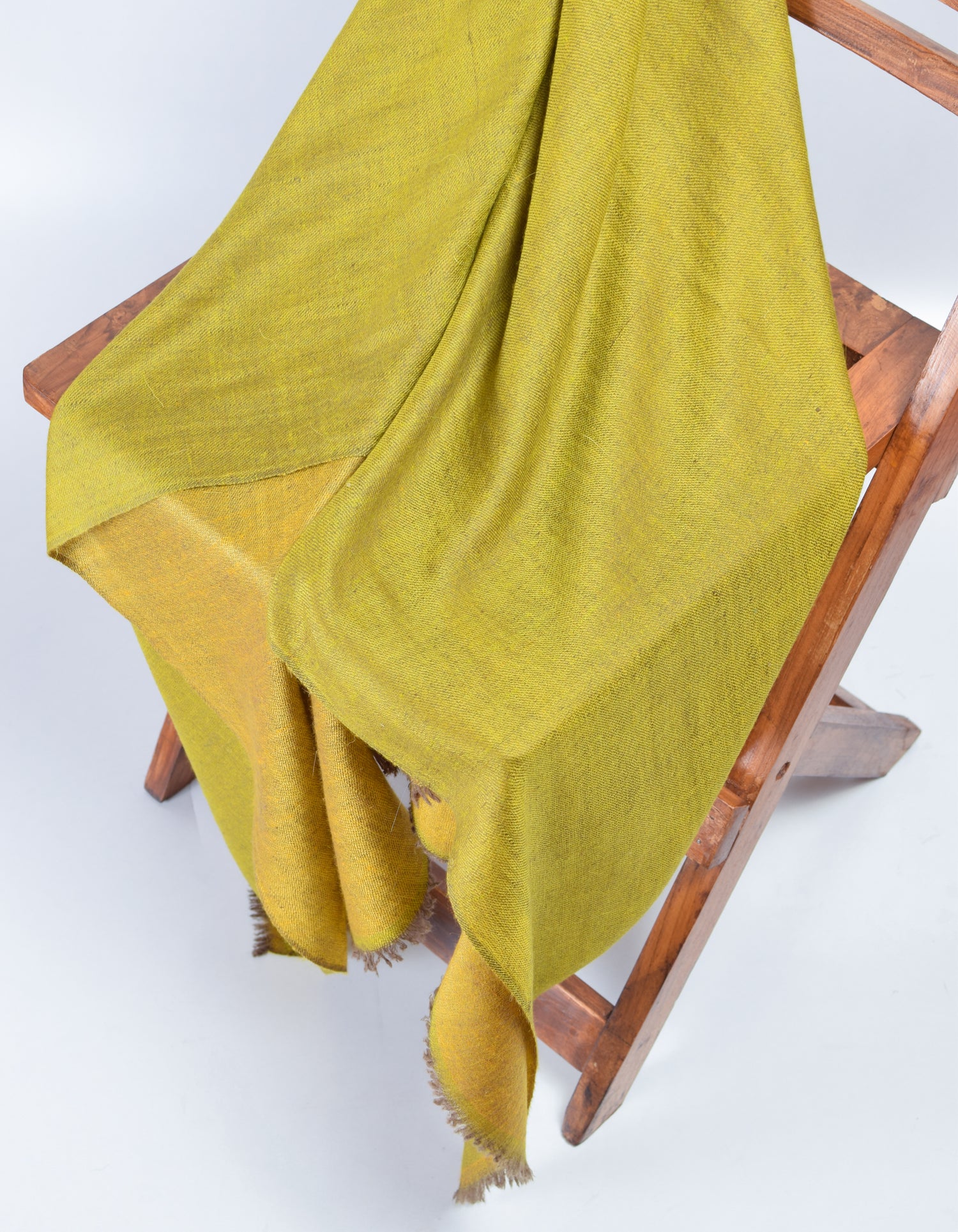 PRODUCT DESCRIPTION: Every time you wear this stole, it tells a story of tradition, art, and excellence. Made from the finest cashmere, our yellow and ginger green pashmina is carefully handwoven on traditional handlooms, a painstaking process that demands both patience and skill. The artisans spend countless hours crafting this two-in-one piece, providing you with luxury, warmth, and comfort. This pashmina stole represents the dedication of those who appreciate the beauty of their craft.