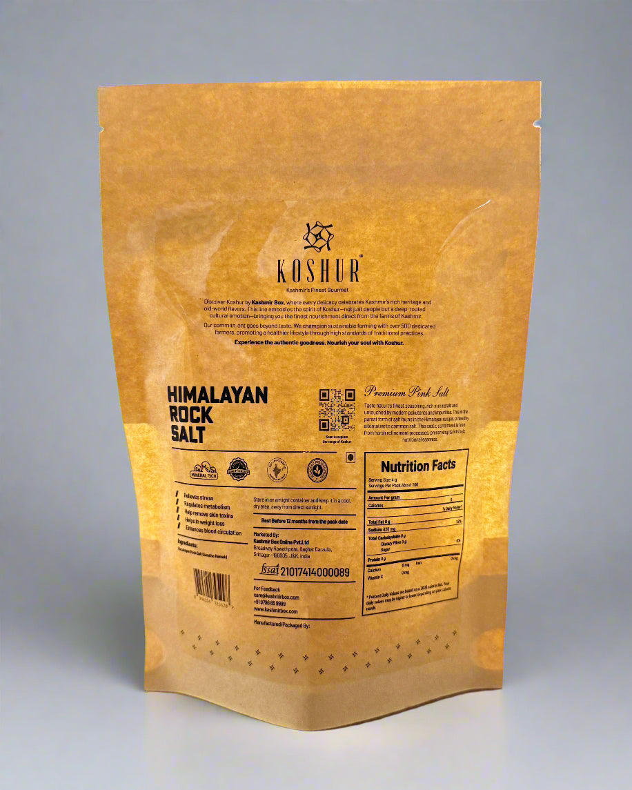 Koshur Himalayan Pink Salt is the healthiest alternative to common table salt. Taste nature's finest seasoning with our Premium Himalayan Rock Salt, also known as Pink Salt or Sendha namak. Originating from the ancient, pristine Himalayan ranges, this exceptional salt is rich in essential minerals and untouched by modern pollutants and impurities.
