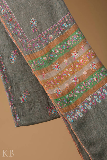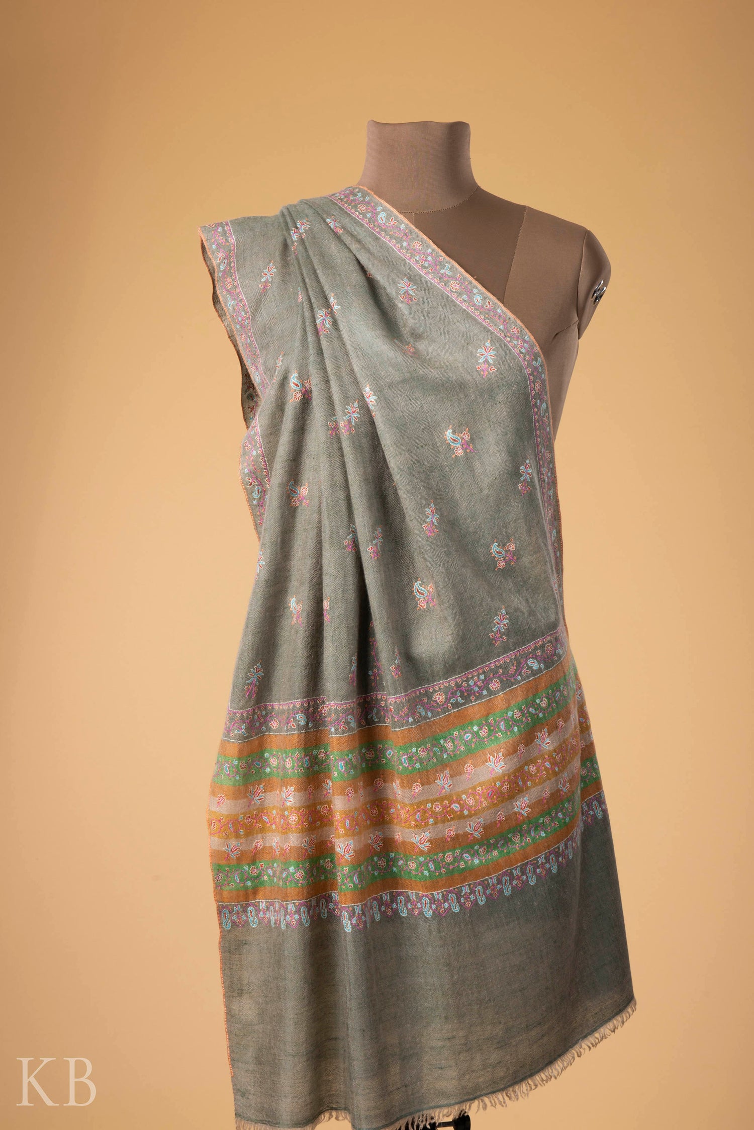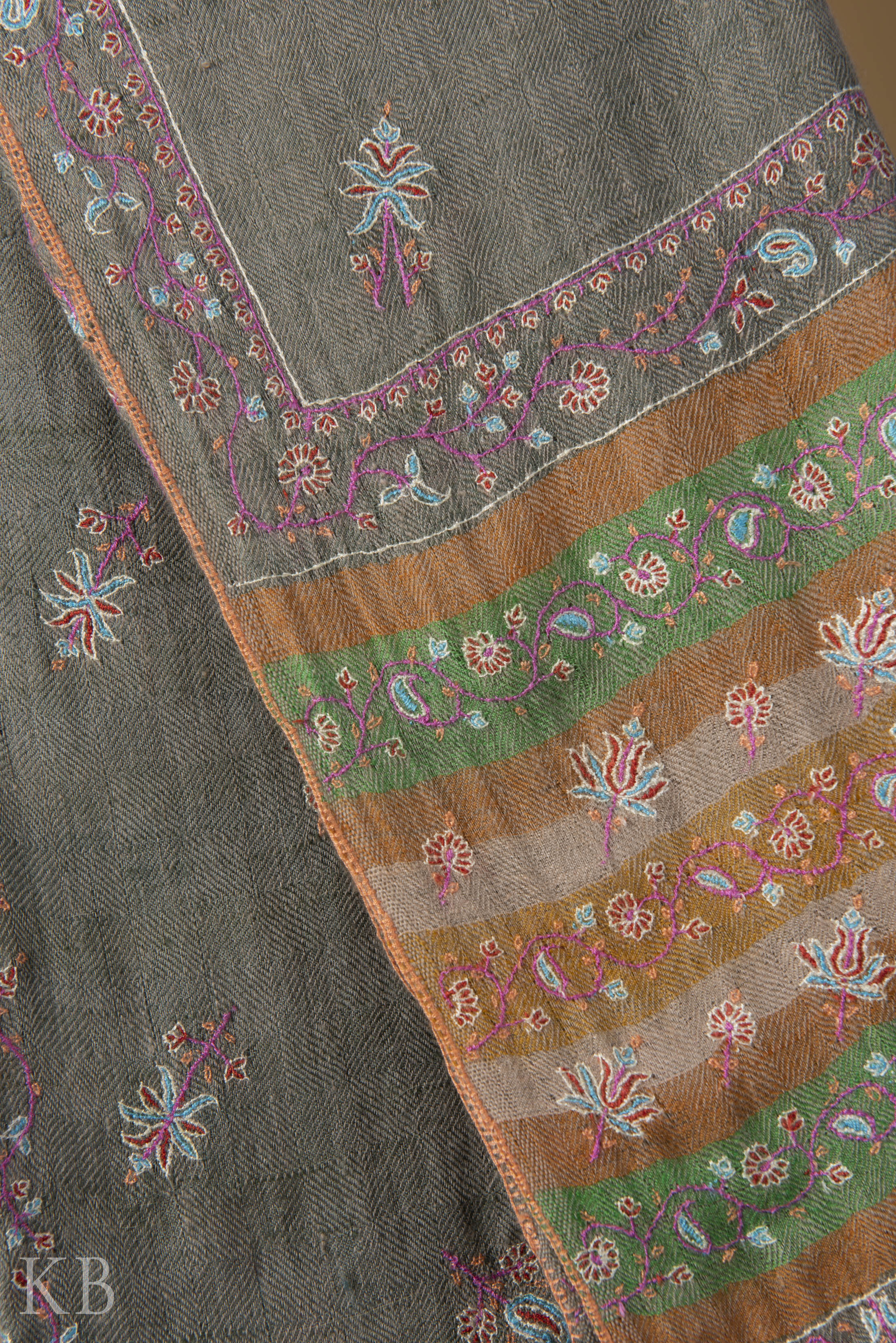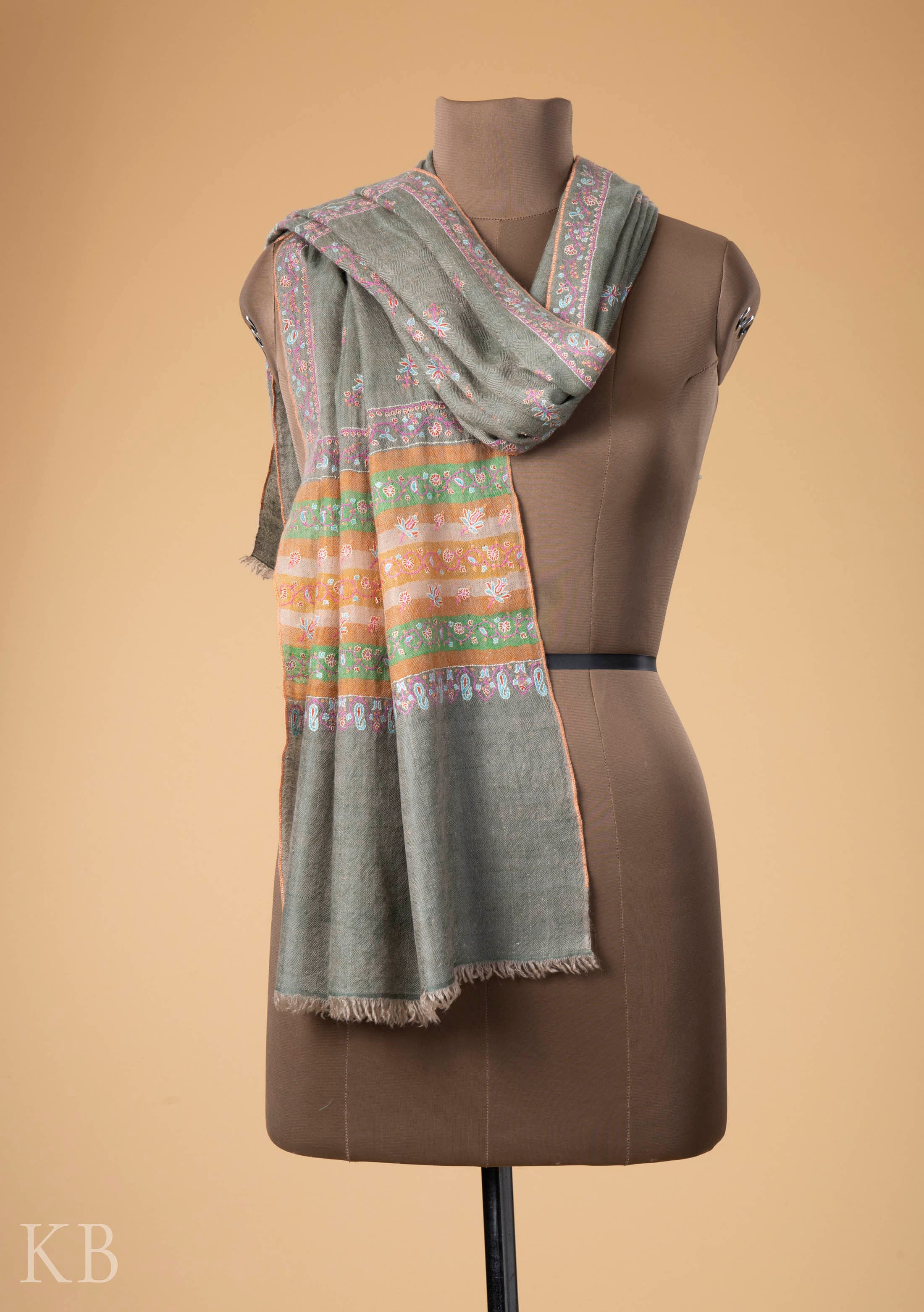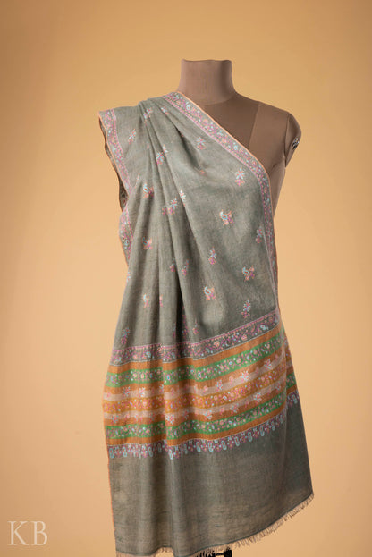 Crafted in unique patterns and colors of nature, this Pashmina wrap steals away all hearts. Beautiful designs and delicate threads of Sozni grace this wrap in all its intricacies and exquisiteness. Wrap yourself with the elegance and royal embrace of Pashmina and get carried away in its eternal beauty.