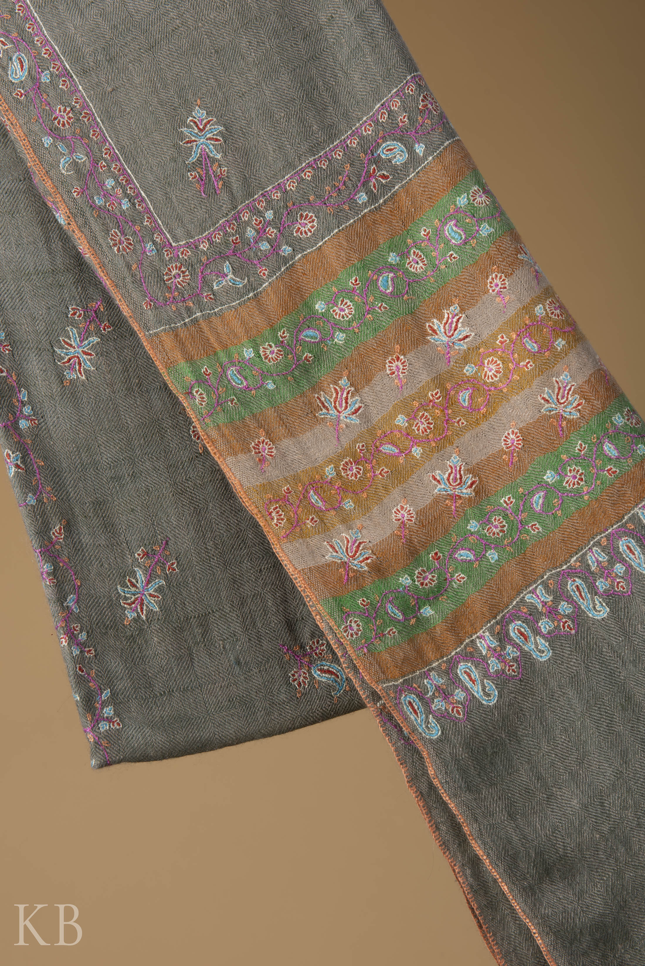 Kelly Green One Sided Palla Kaari Pashmina Stole