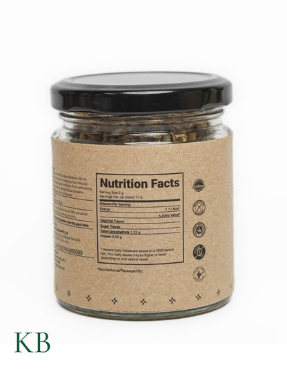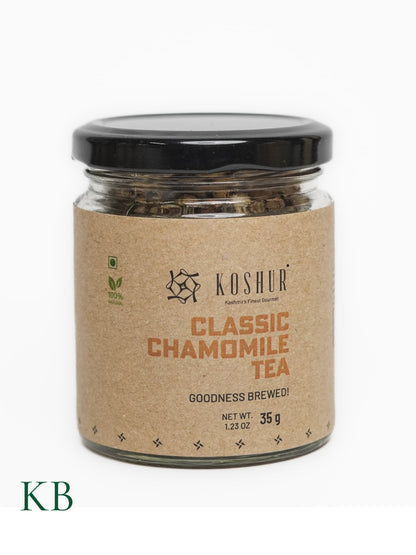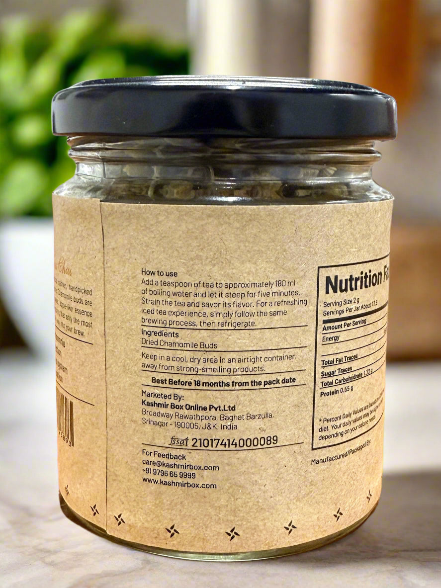 A moment of calm in every cup. Chamomile is one of the oldest herbs known to mankind, cherished for generations. It's a soothing herb from the serene peaks of Kashmir. Our chamomile buds are 100% whole and sun-dried to preserve their sweet, apple-like essence and therapeutic properties, ensuring the most flavorful blooms in your infusion.