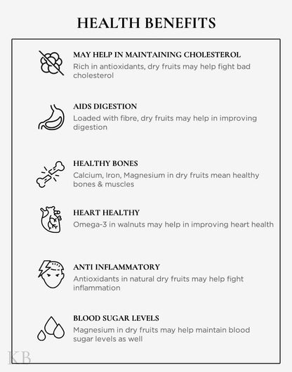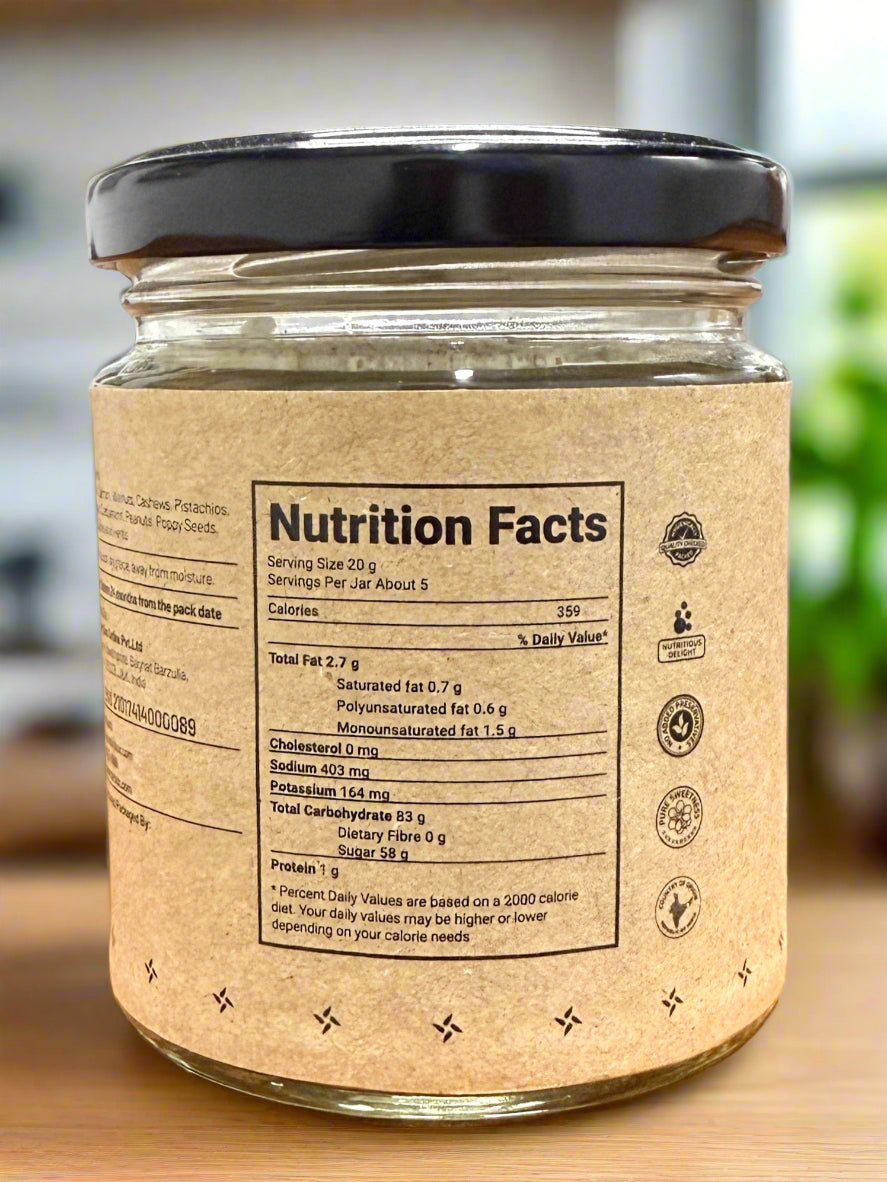 The dry fruits are lightly crushed using traditional pestle and mortar techniques to retain their wholesome goodness and ensure you get the most natural taste and texture.