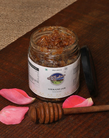 The luxurious decadence of rose petals with the rich, natural sweetness of pure, unprocessed honey creates a true celebration of taste that delights the senses. Gulkand is a royal treat from the Indian subcontinent. Our version is made with rose petals from the best farms in Kashmir, sun-cooked with organic honey. This traditional process comes from Persian origins, where 'gul' means rose and 'qand' means sweet.
