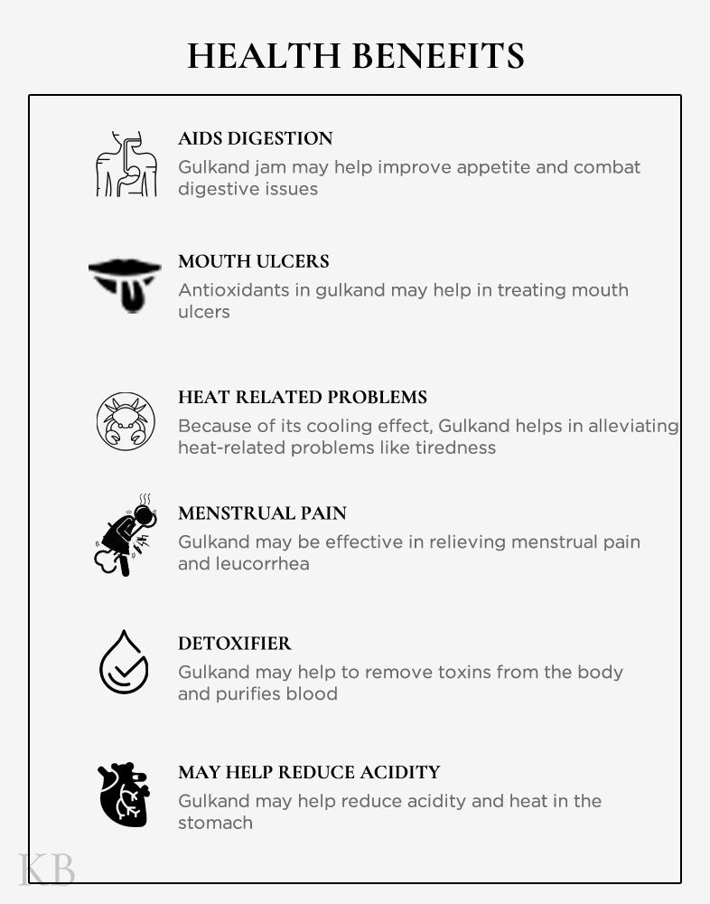 Not only is our Gulkand Honey Marmalade delicious, but it's also packed with antioxidants, amino acids, enzymes, and vitamins. These nutrients help support your immune system, aid digestion, relieve stress, and provide a cooling effect.
