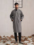 Grey Chinese Collar Long Coat-Style Men’s Phiran – Kashmiri Tweed Winter Pheran | HAIDER