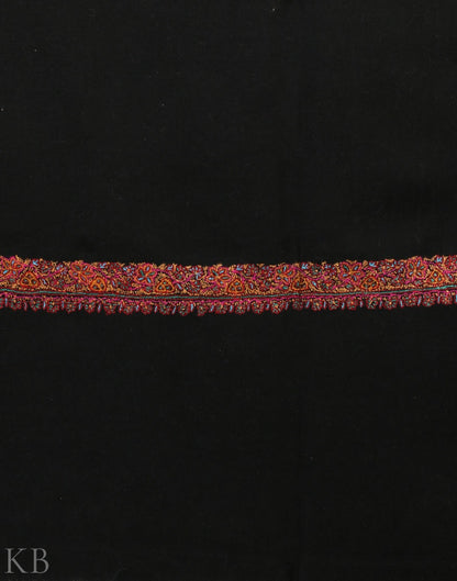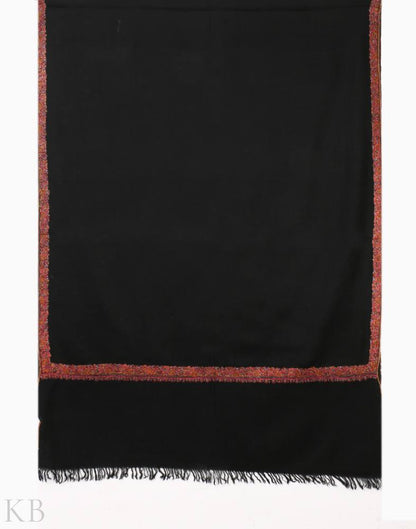 Rich designs of Sozni Kaari adorn the plain Black lush Pashmina Stole along the borders with intricacies and finesse. The exquisiteness of Pashmina and the grace of Sozni is a perfect combination for chilly winters. Lend yourself the regality and warmth of Pashmina with unique craft of Kashmir and look lovely in this wrap.