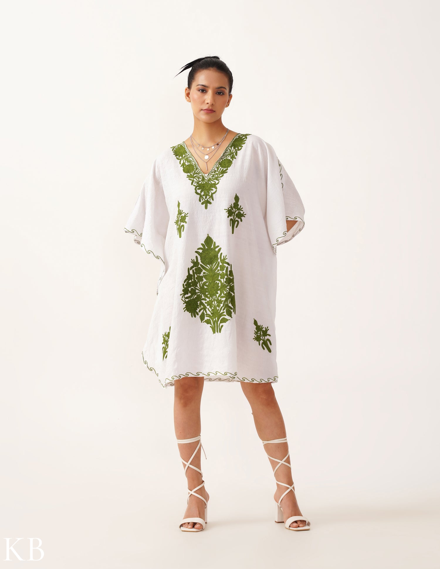 Moss Aari Off-White Cotton Short Summer Kaftan