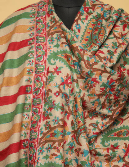 Multicolor Kalamkari Sozni Embroidered Pure Pashmina Shawl