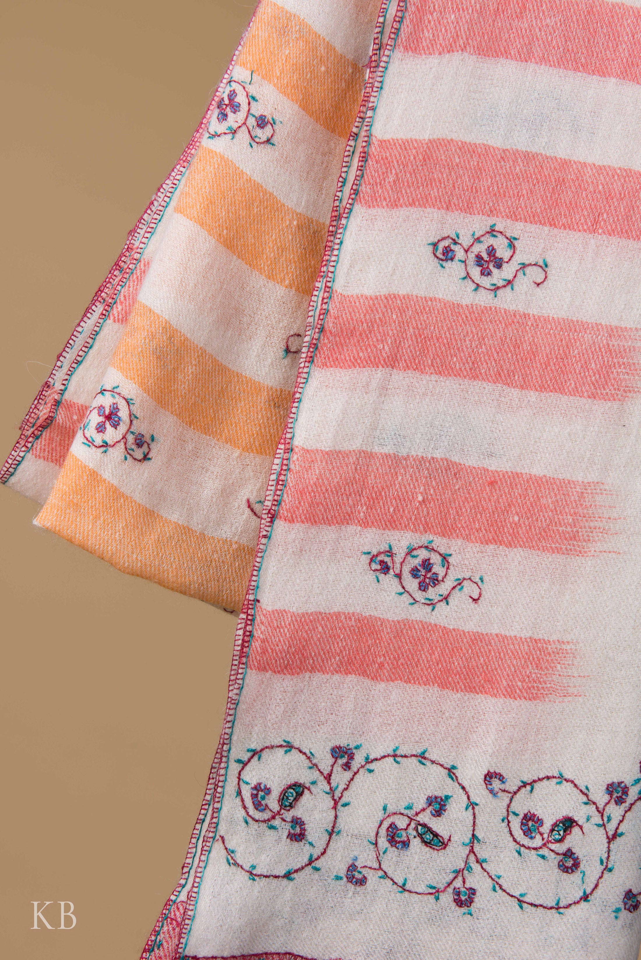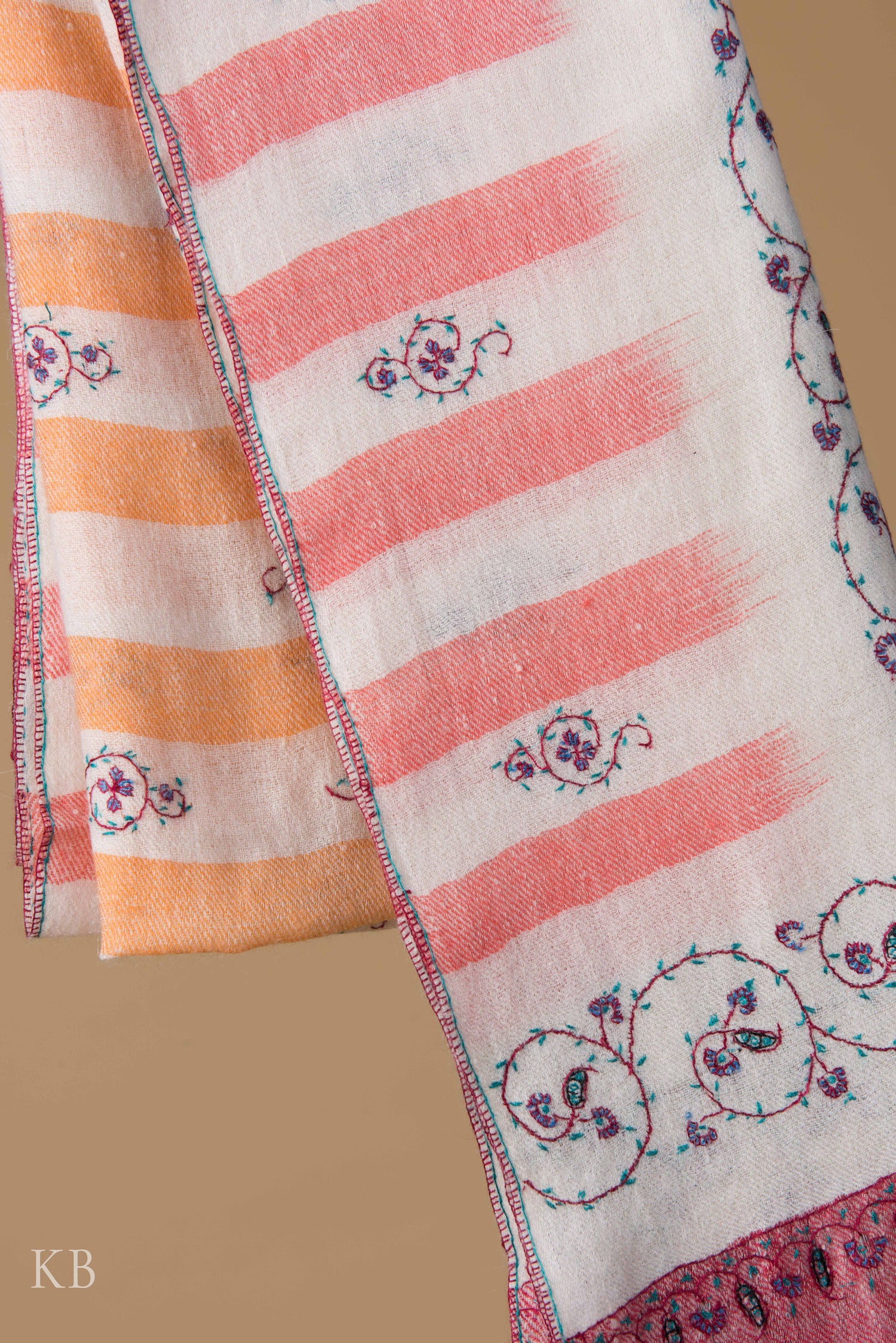 Multicolored Ikkat Designed Sozni Embroidered Stole