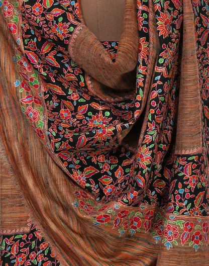 Multicolored Ikkat Embroidered Cashmere Shawl