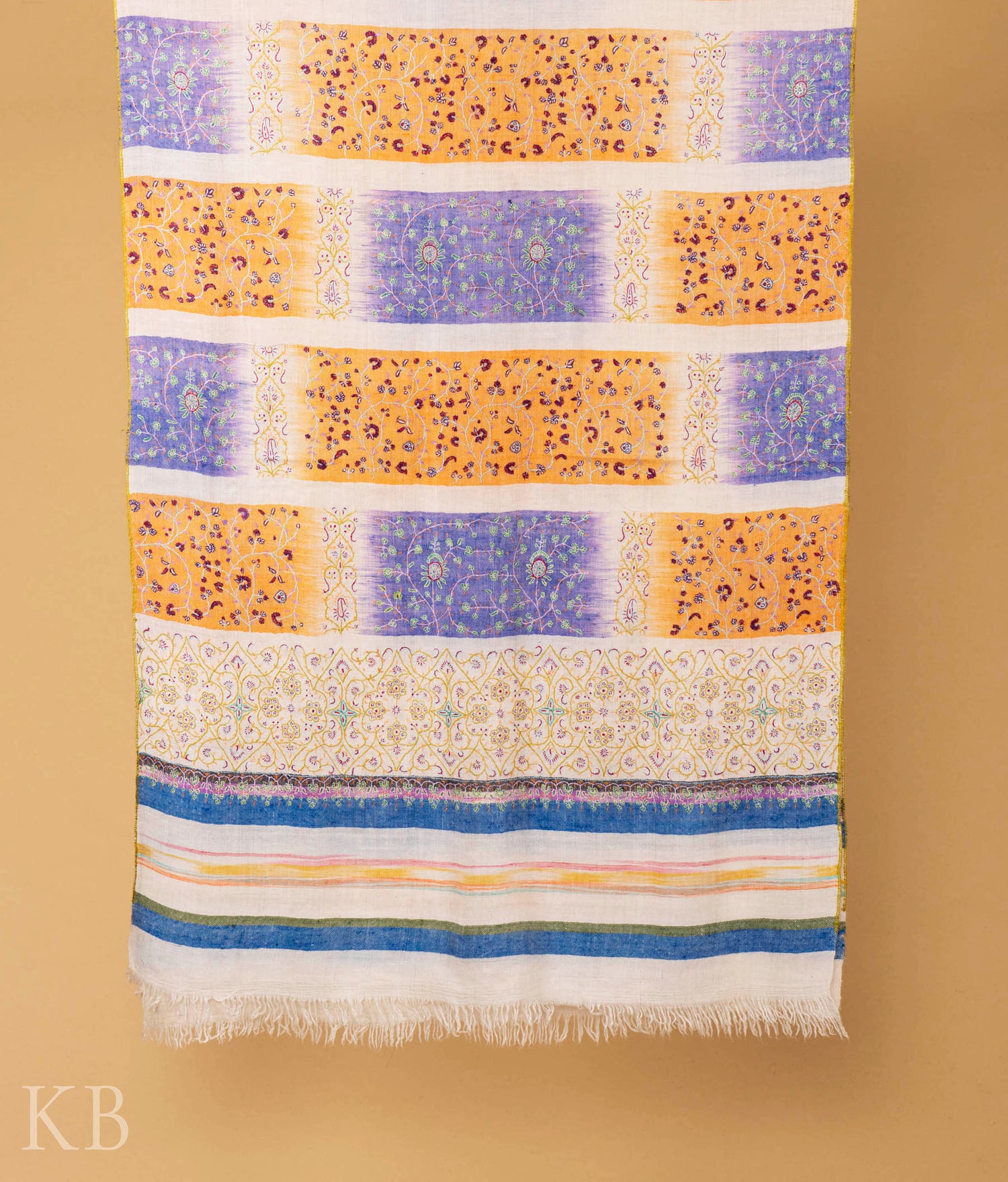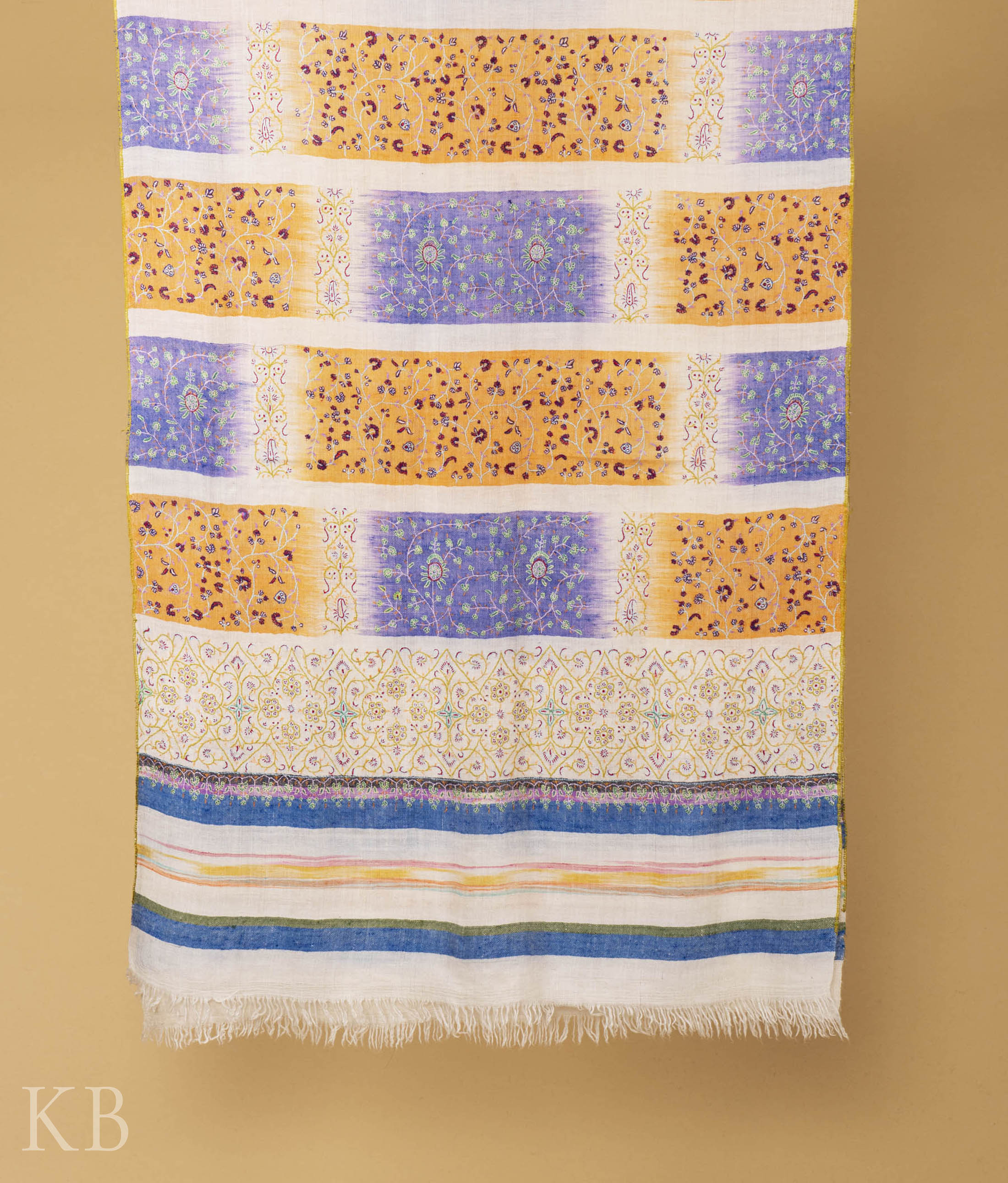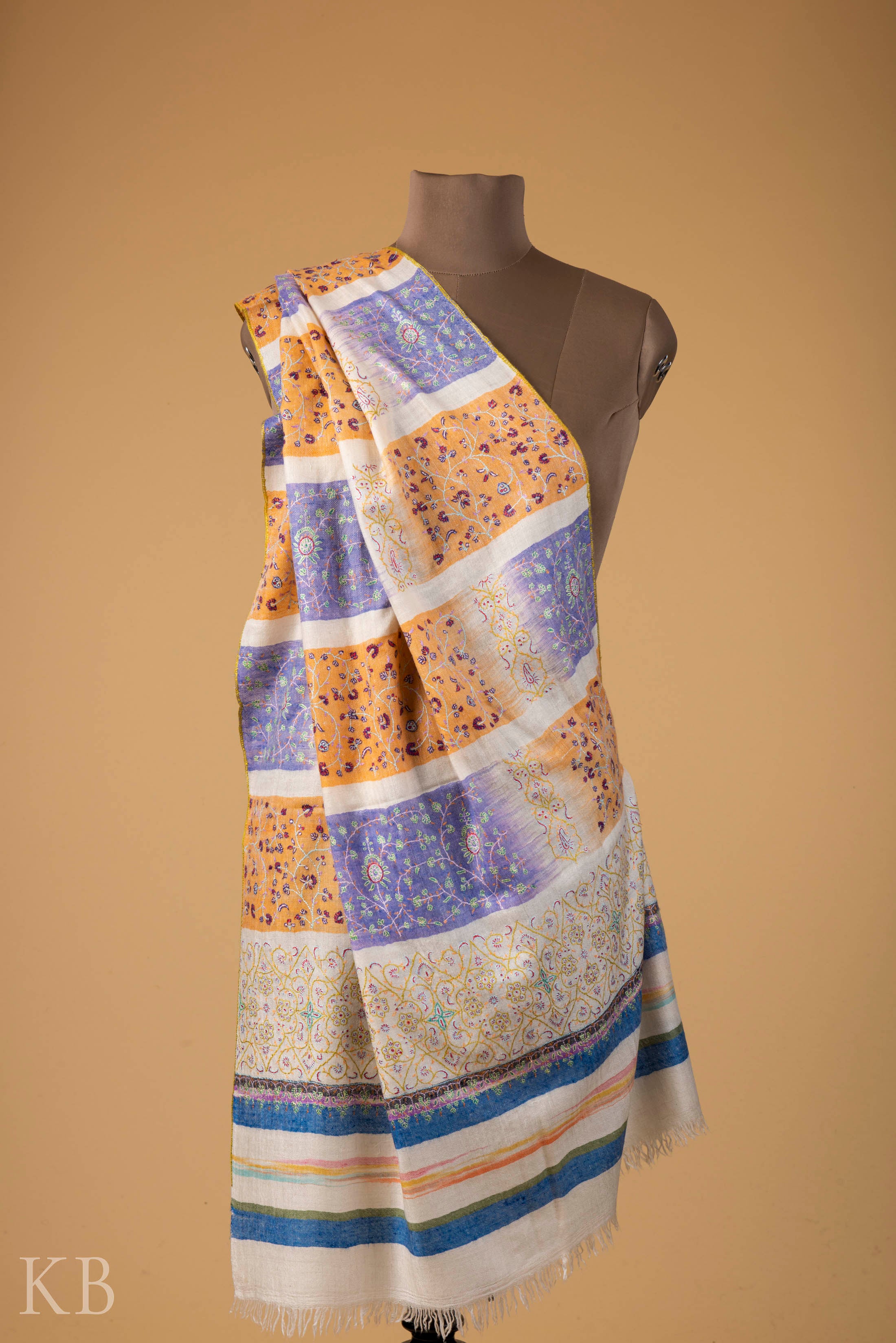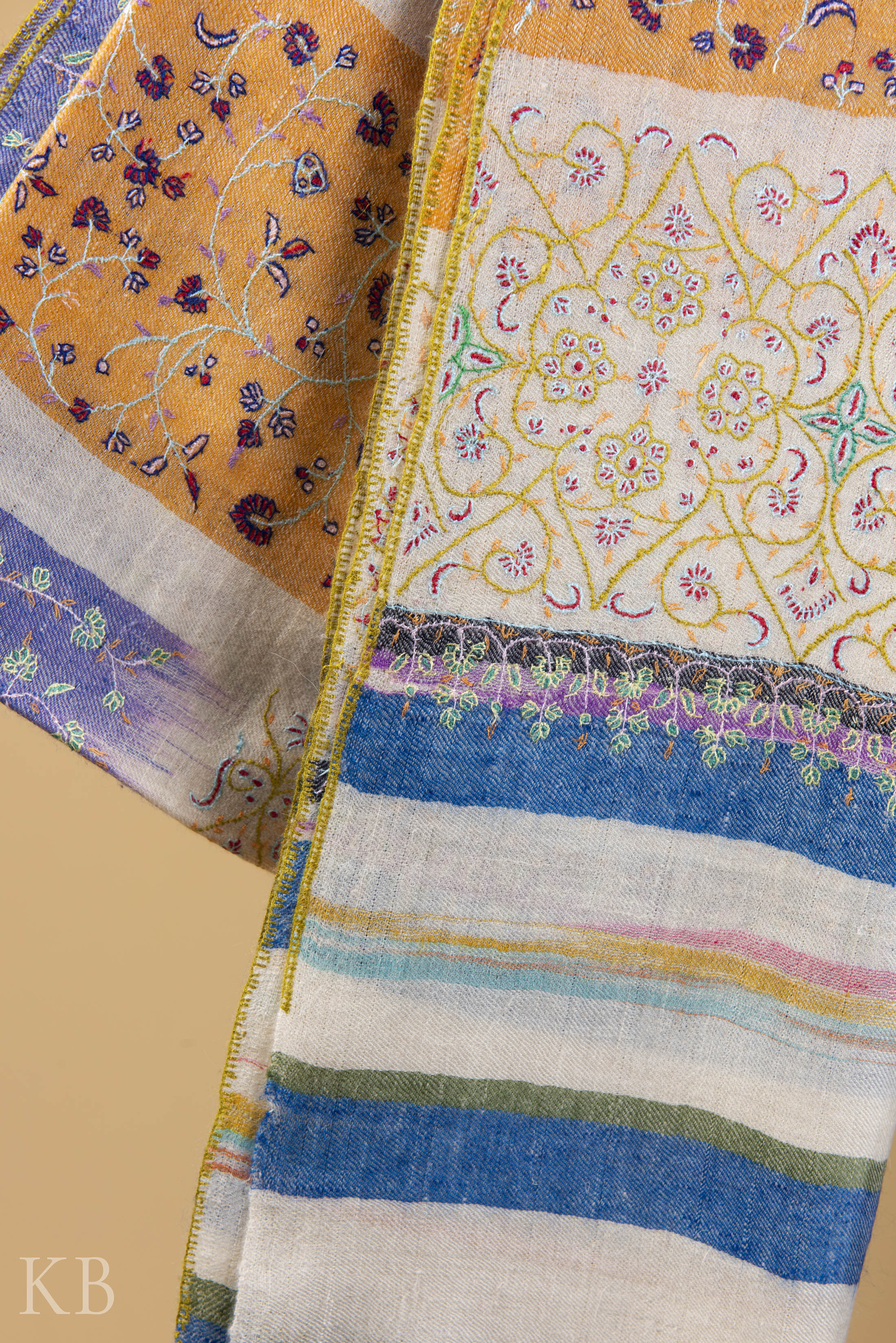 Most of the products on KashmirBox.com are handmade; hand woven and intricately crafted, as such there may be variations in colour and embellishment of the actual product against that as shown on the website. This is due to the nature of fabric dyes, weather at the time of dying and differences in display outputs due to lighting, digital photography, colour settings and displaying capabilities of computer monitors, laptops or the mobile devices that you may be using.