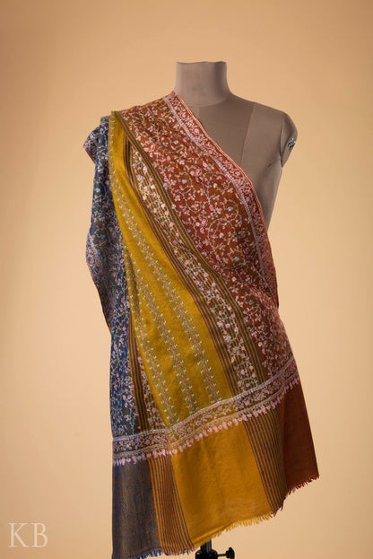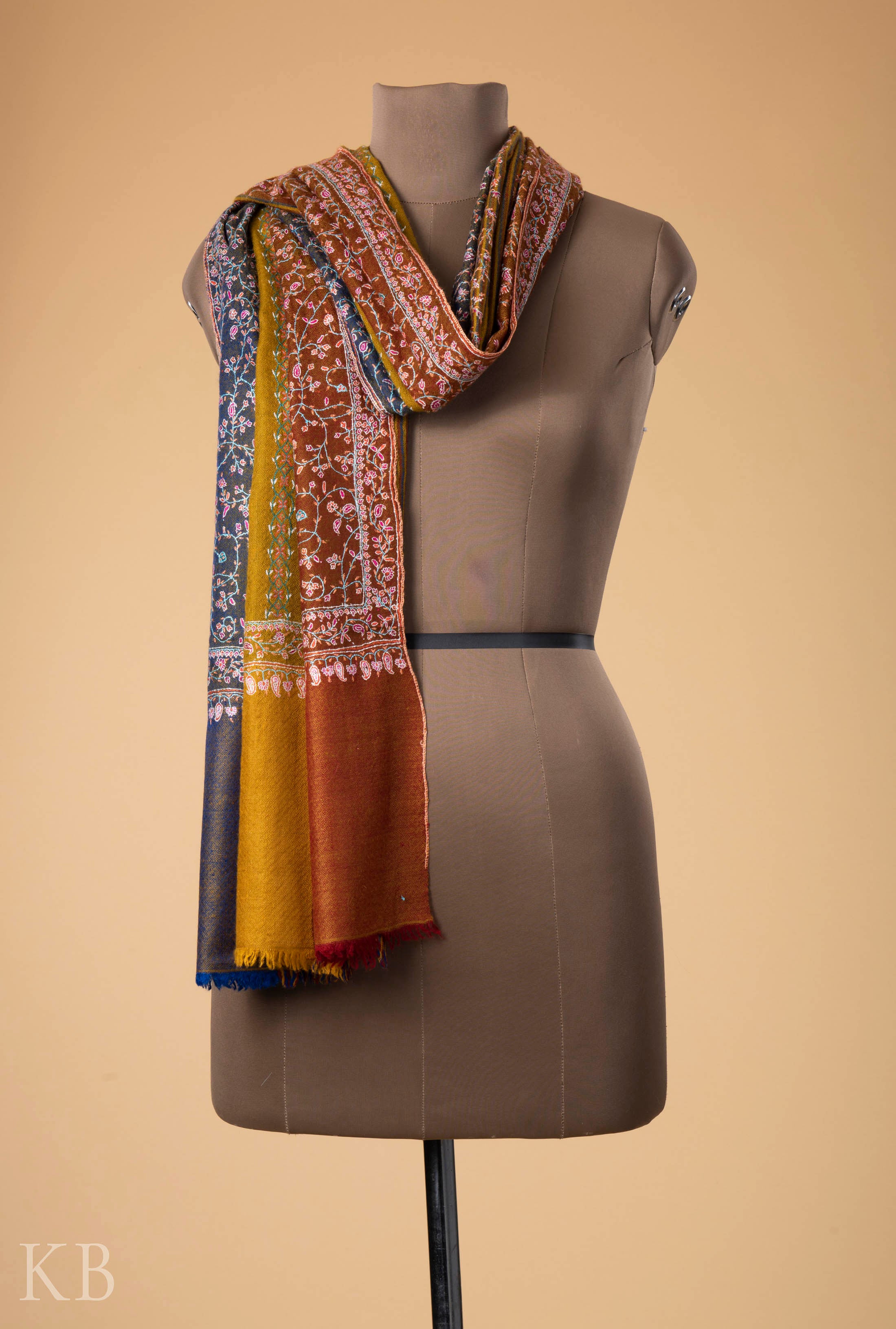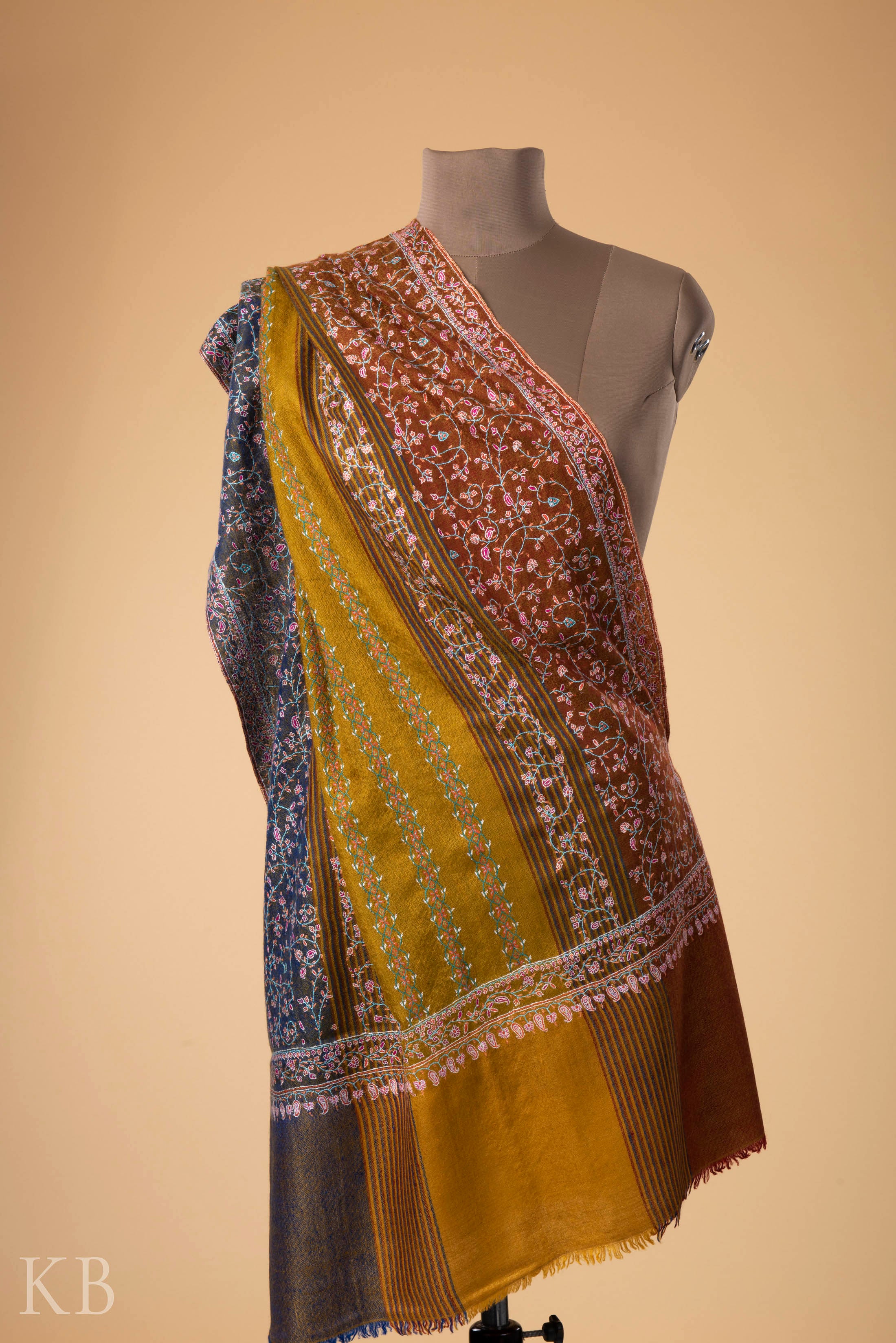 Crafted in unique patterns and colors of nature, this Pashmina wrap steals away all hearts. Beautiful designs and delicate threads of Sozni grace this wrap in all its intricacies and exquisiteness. Wrap yourself with the elegance and royal embrace of Pashmina and get carried away in its eternal beauty.