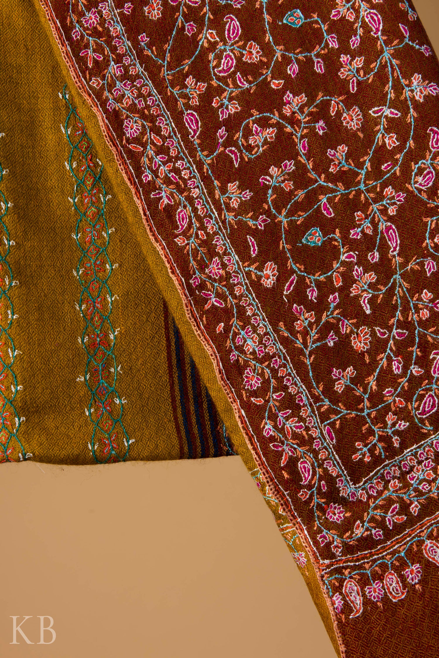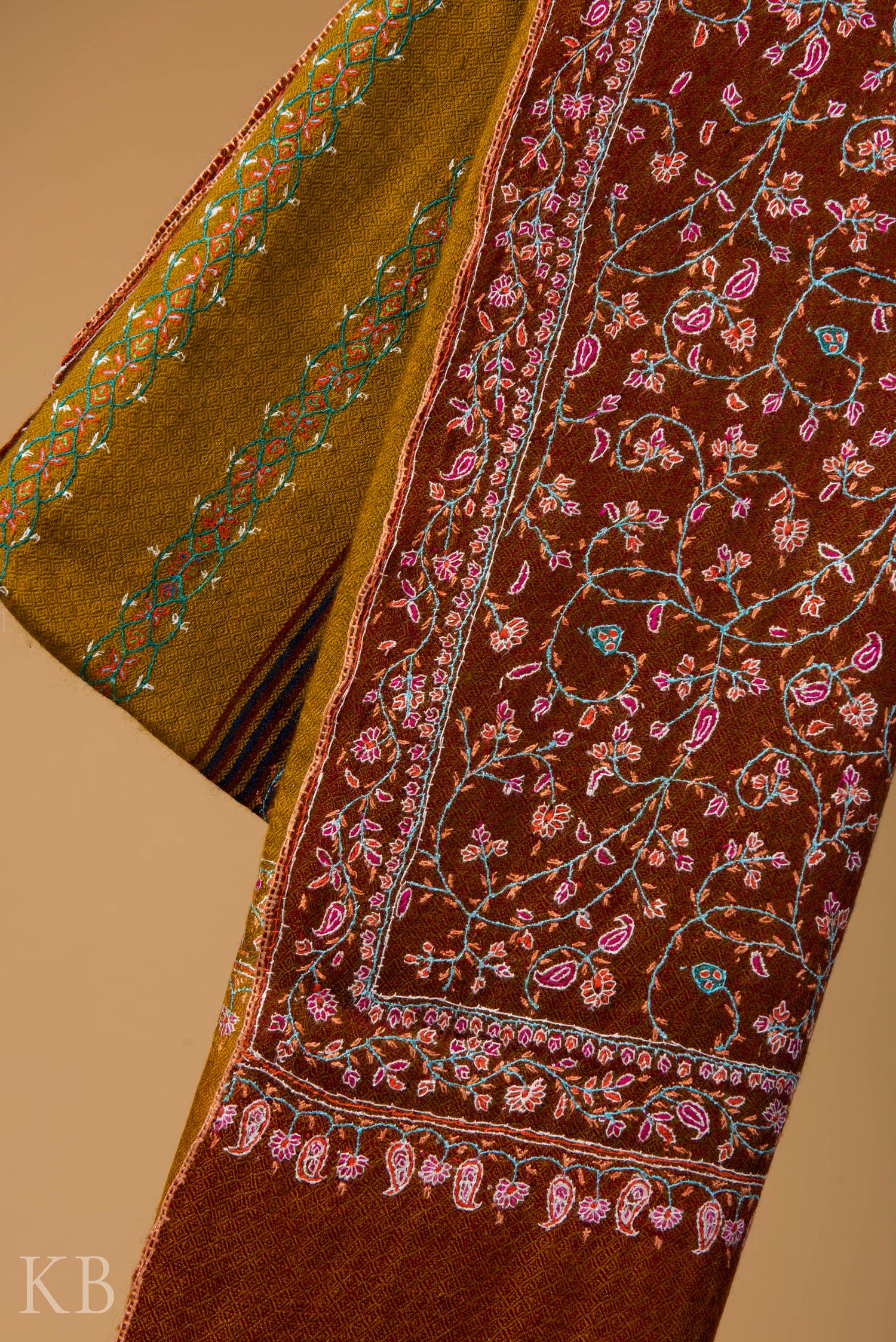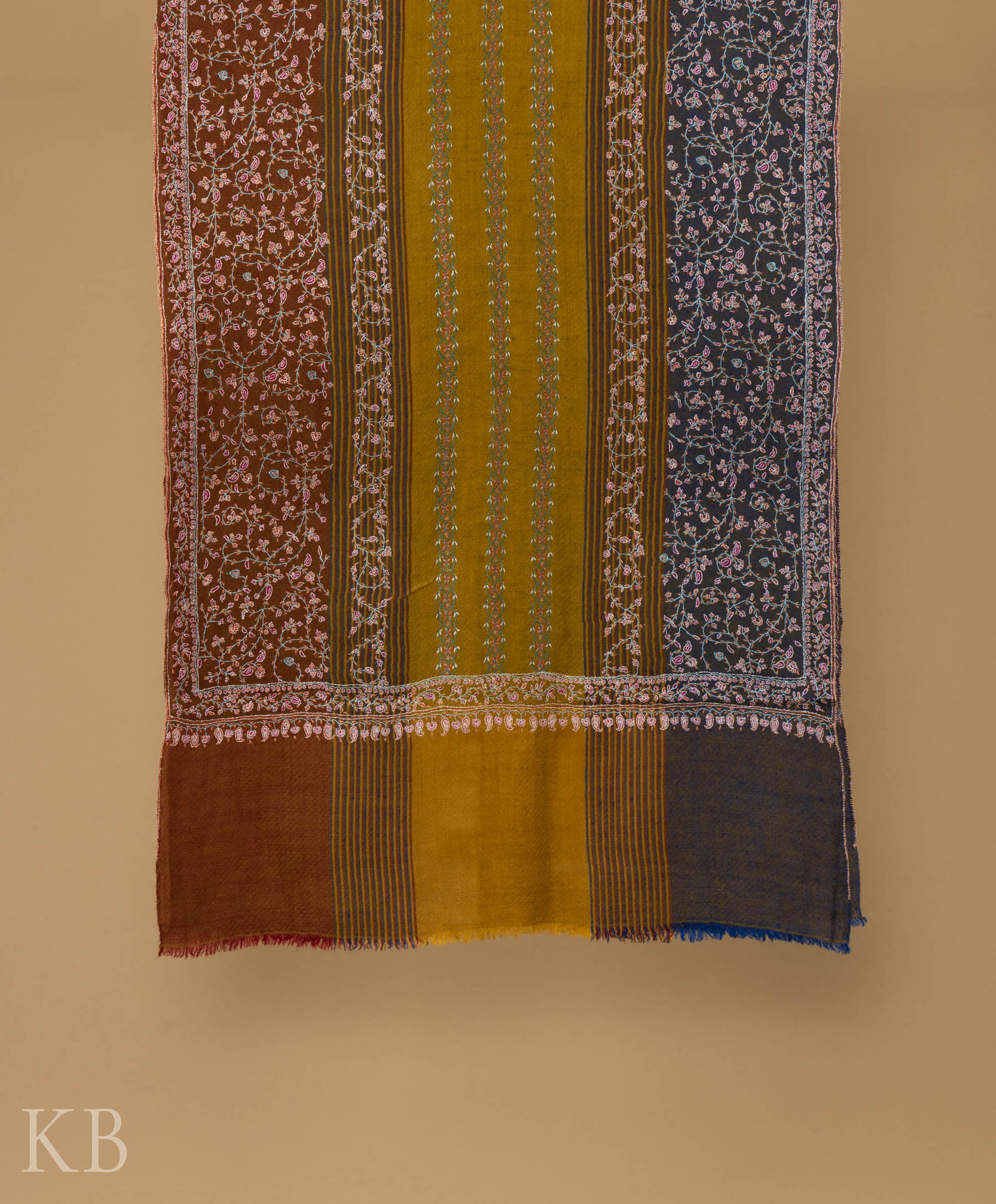 Crafted in unique patterns and colors of nature, this Pashmina wrap steals away all hearts. Beautiful designs and delicate threads of Sozni grace this wrap in all its intricacies and exquisiteness. Wrap yourself with the elegance and royal embrace of Pashmina and get carried away in its eternal beauty.