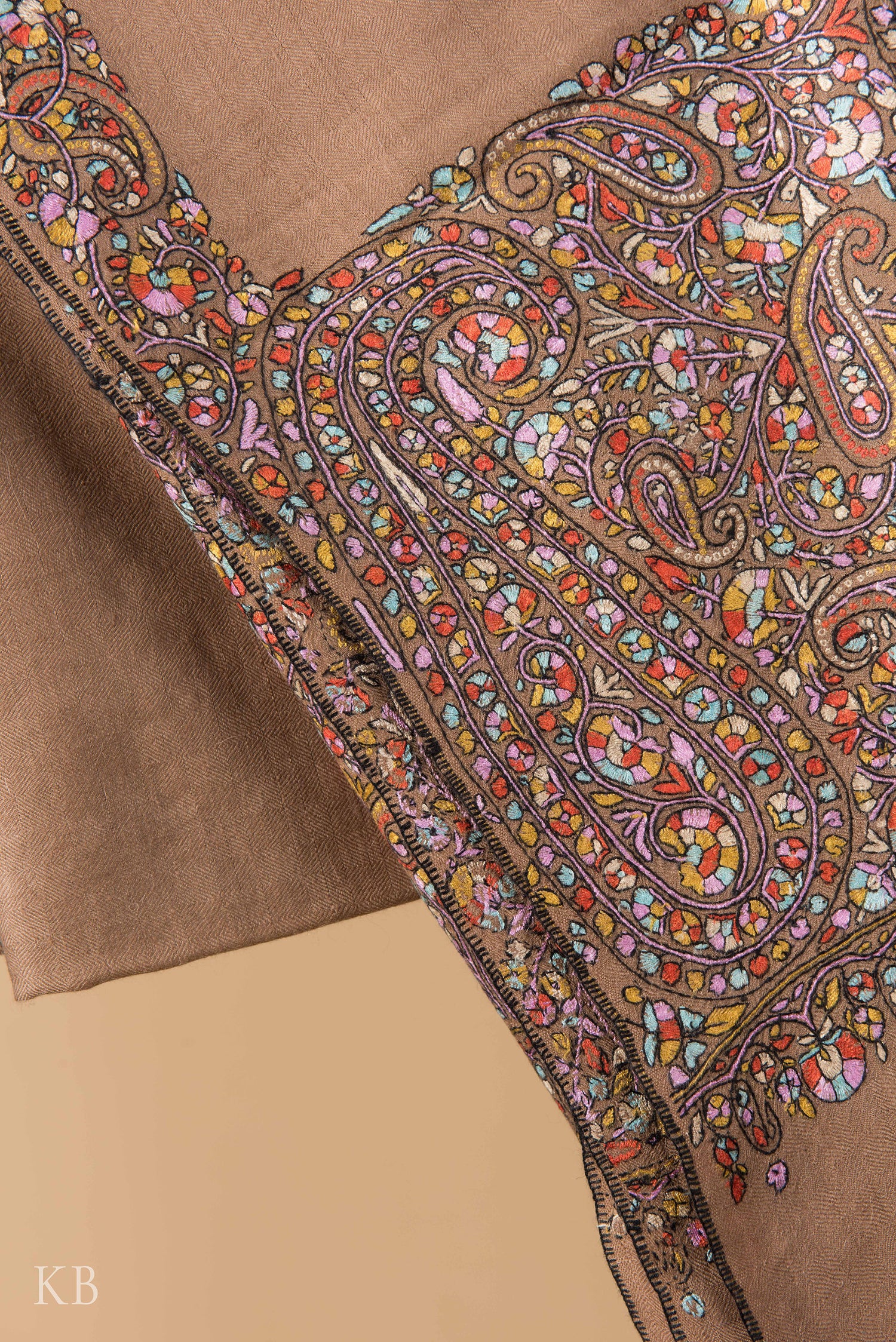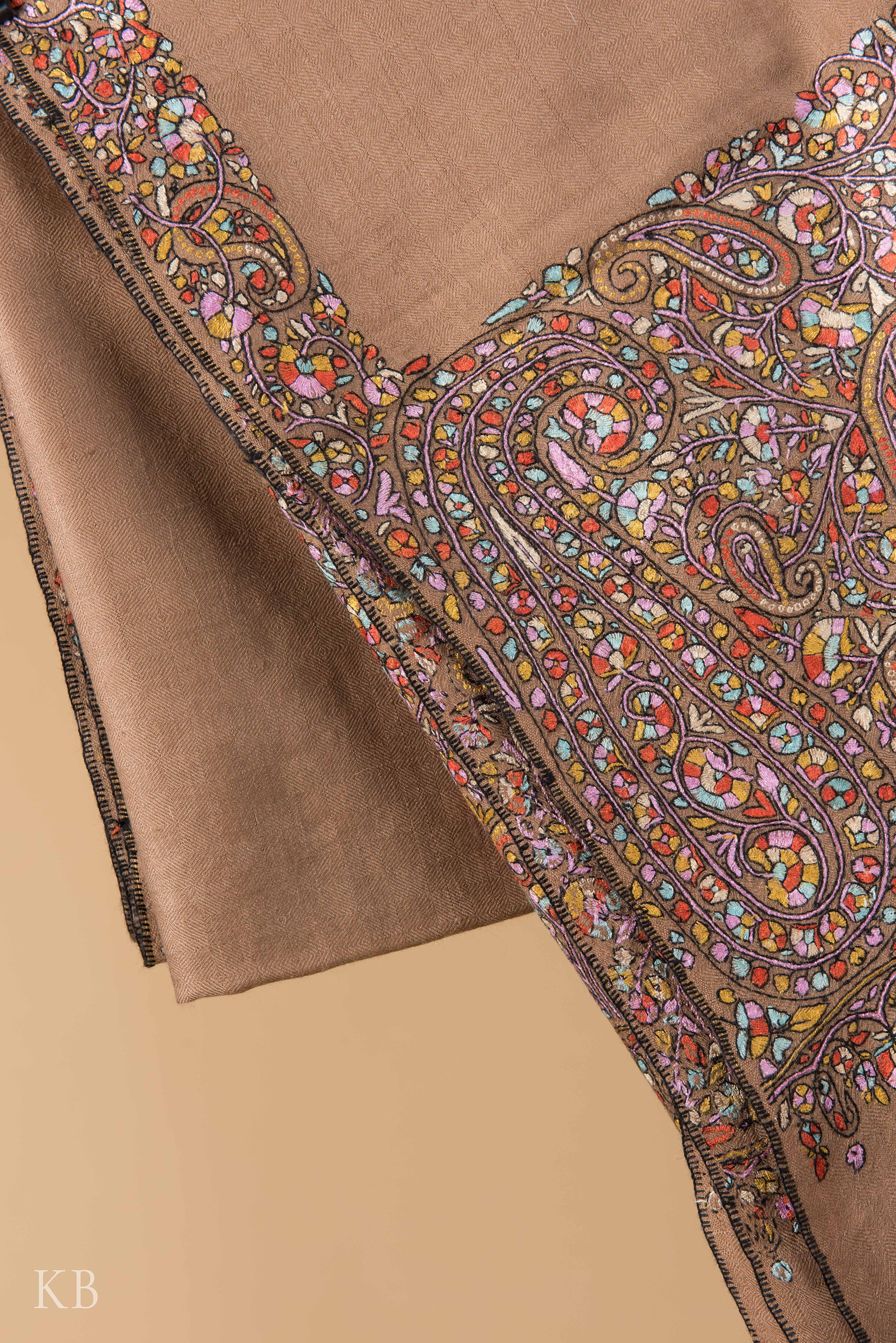 Natural Brown Kanikaar Palla Pashmina Shawl
