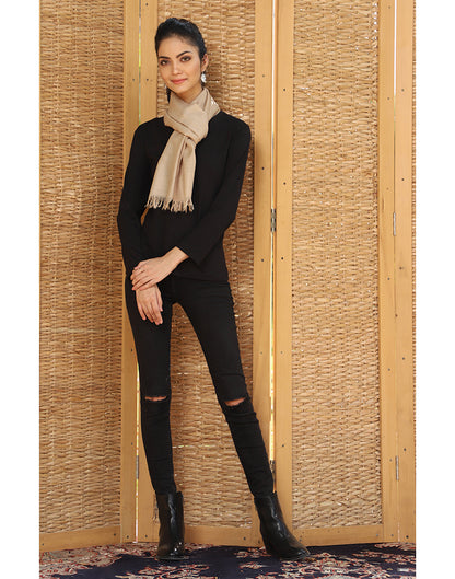 In the natural tones of Pashmina is handpicked a royal wrap to cast a spell of your grandeur on every looking eye. Pure Pashm threads are wedded into warps and wefts to conjure a scarf which adds an urbane hint in how you accessorize. Needless to say, this handwoven wrap will go with every ensemble of your attire and complete your elegant style in a sophistication of its own.