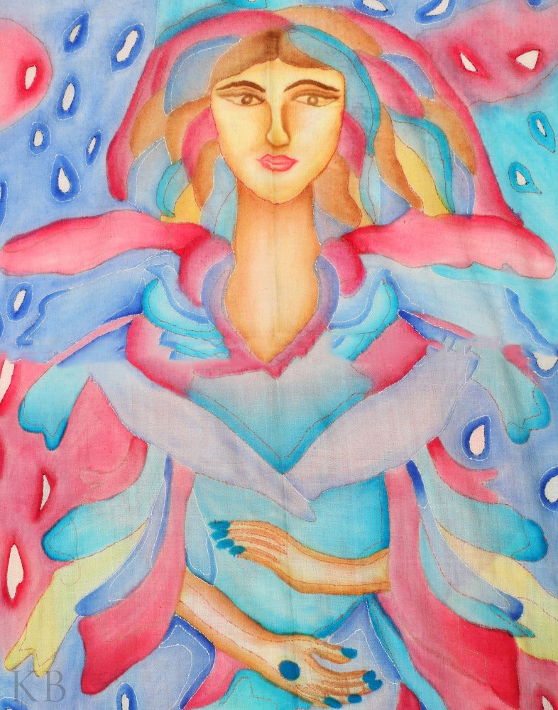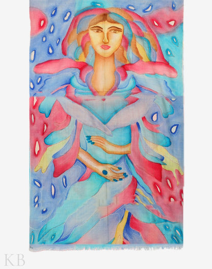 Colors hand-painted on this Pashmina Stole are stolen from the depths of nature. A girl and her charm hand-painted in multicolors is truly an epitome of Art outlined by the threads of Sozni. Your cozy winter is accompanied by the colors of nature singing in harmony with the delicate Pashm threads. Wrap this stole around you and get carried away in its eliteness and warmth.