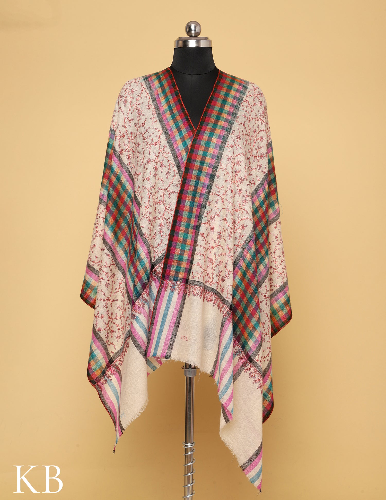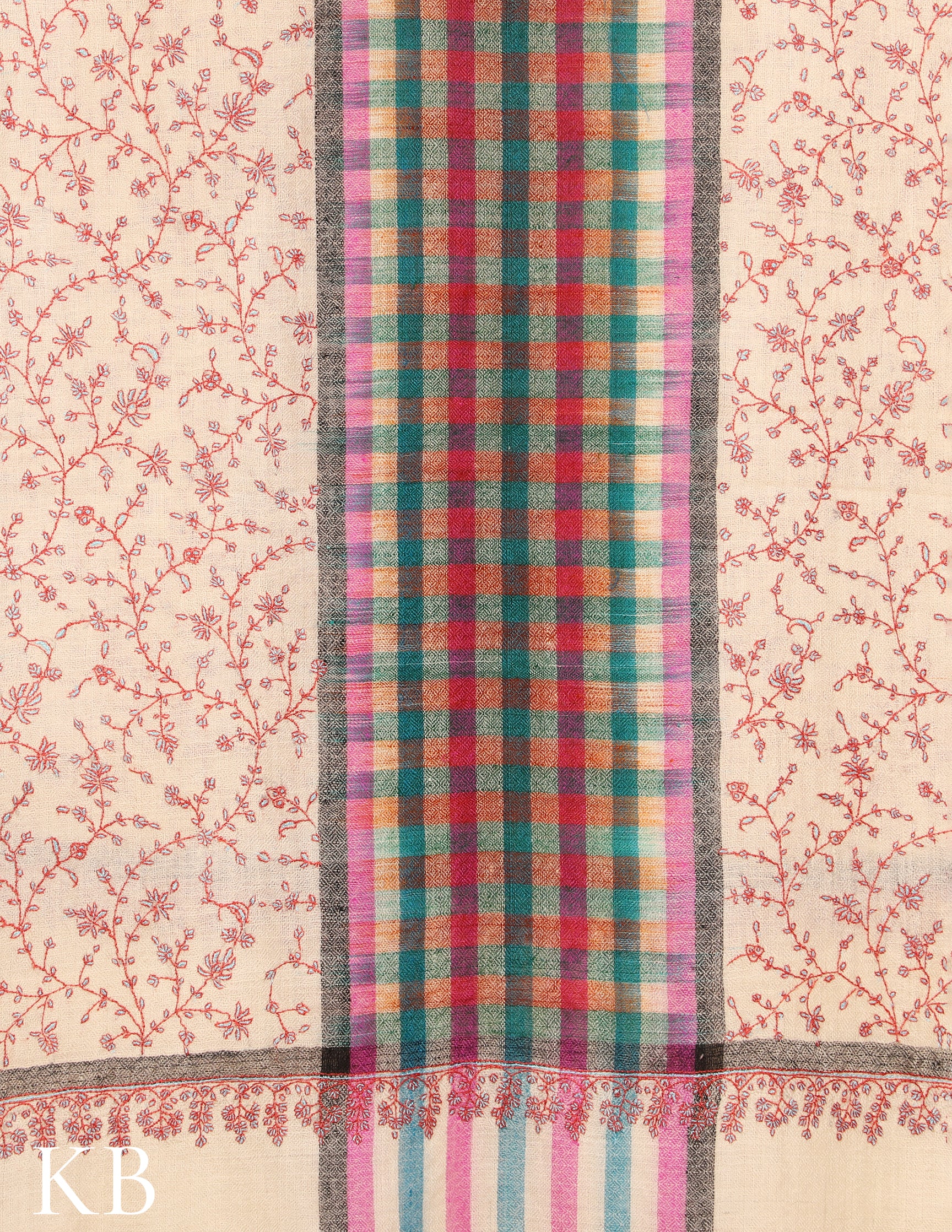 Off White Sozni Embroidered and checked Palla Pure Pashmina Stole