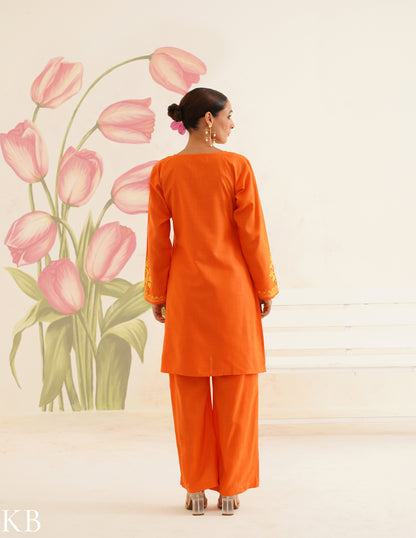 Orange Cotton Coordset with Golden Aari Embroidery | Bahaar Collection 2025
