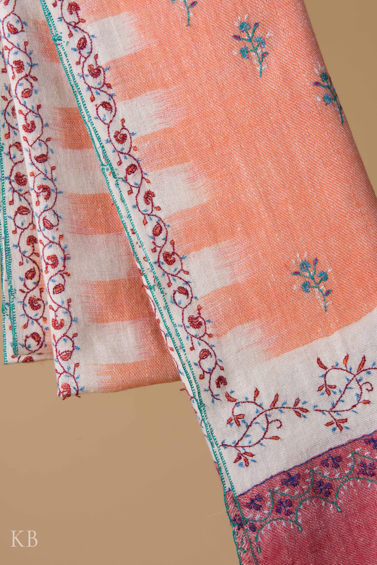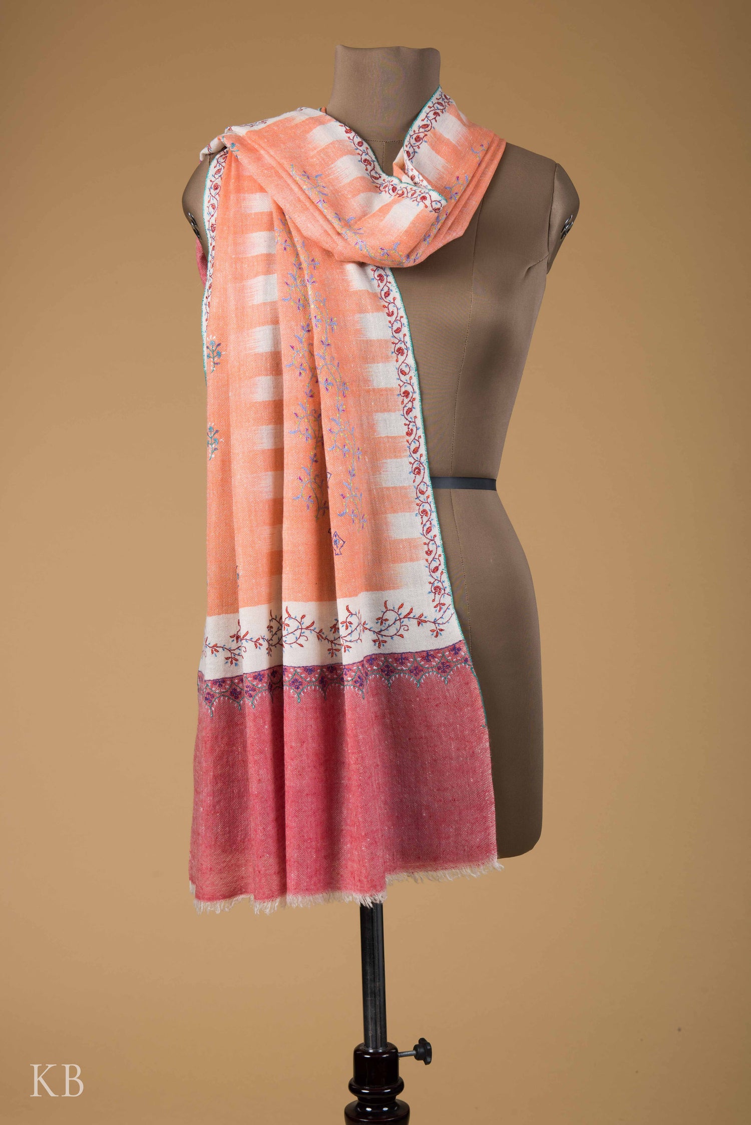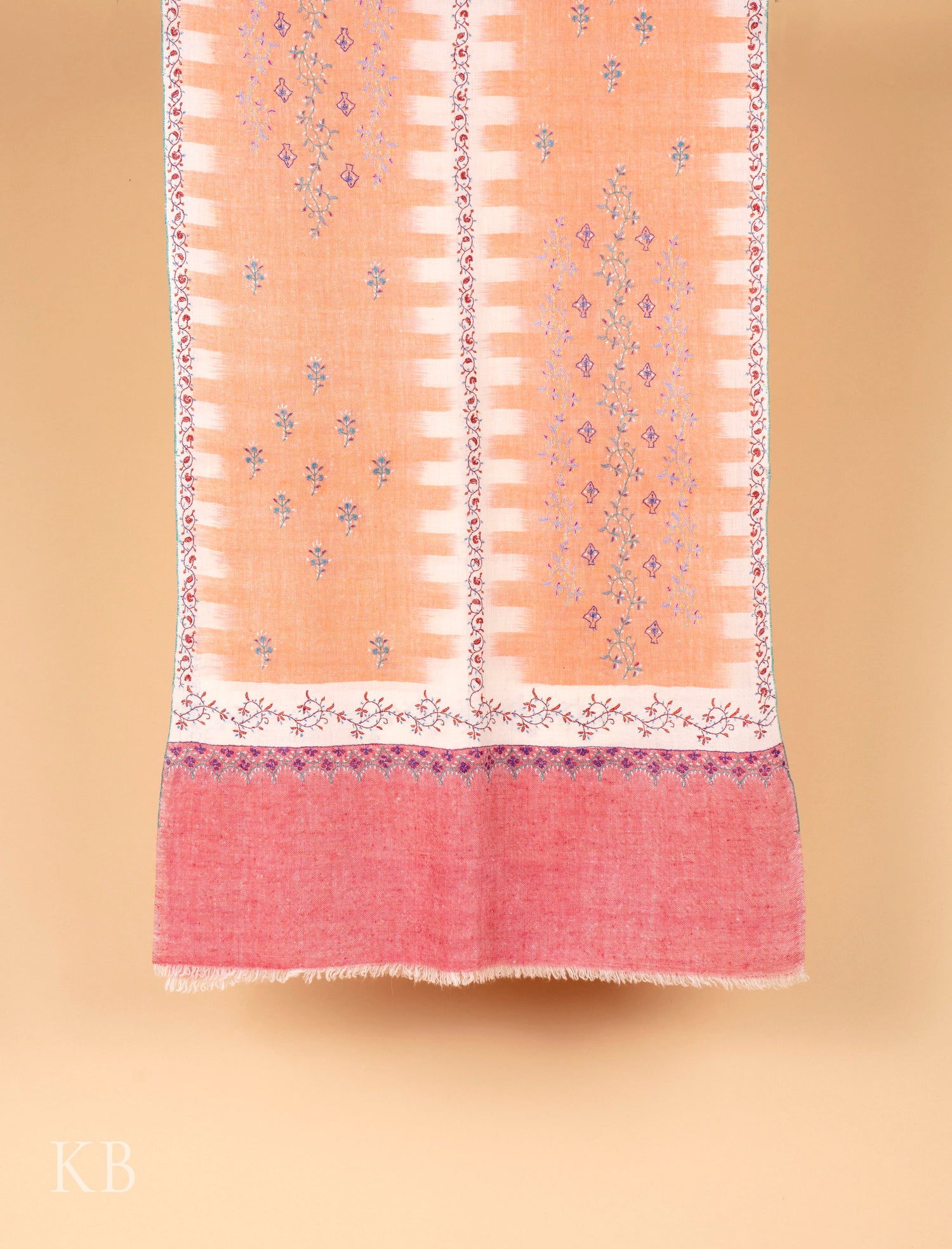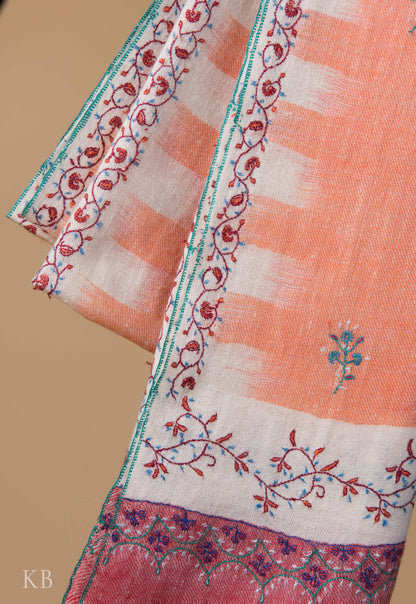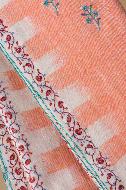 Papaya Ikkat Designed Sozni Embroidered Pashmina Stole